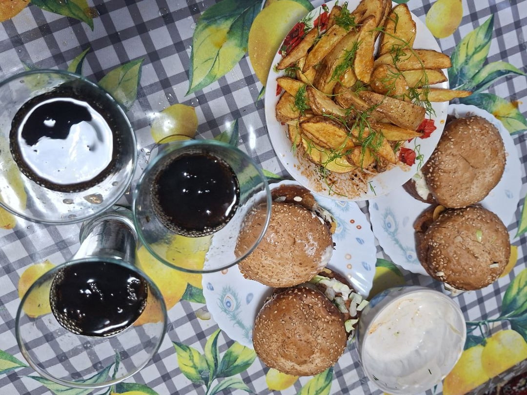 Deep fries burgers, grill’s potatoes. I guess that’s one way to do it