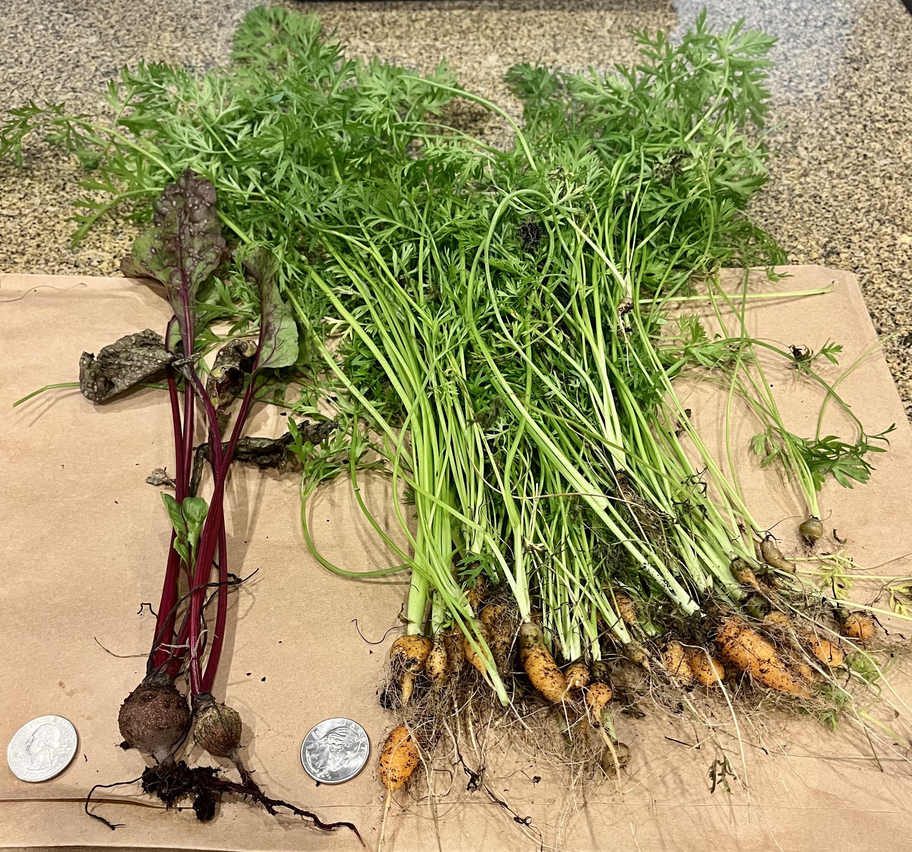 We did beets, carrots, and onions for the first time. Turns out we’re really bad at growing root veggies. Our carrots and beets were even smaller than those.