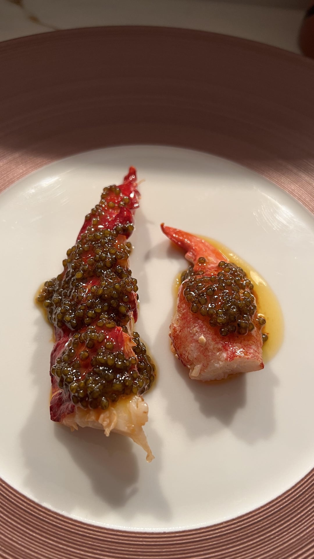 6: add on (£35) of lobster, caviar in wagyu fat. lobster was excellently cooked and the flavours all hit with this dish. a few very tiny bits of shell but didn't bother me much