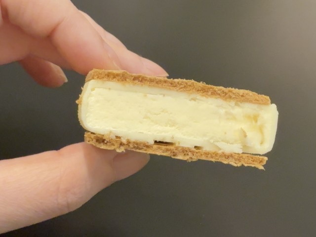She didn’t have to worry about the wafer crumbling and making a mess as it stayed intact, even after biting into it. Plus, the thin and crispy layer was exactly the right amount for adding the perfect contrast to the rich and creamy ice cream.