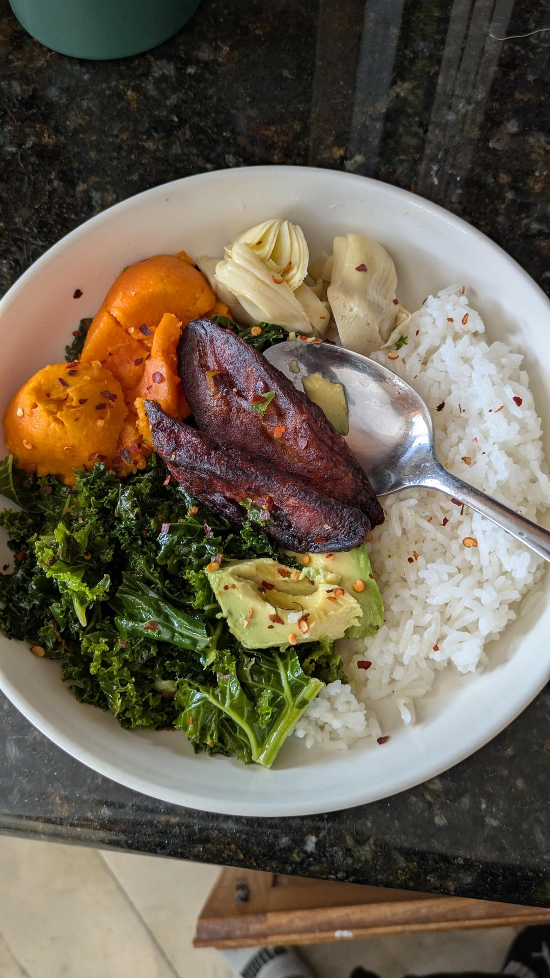 I mean, make shittier meals. Can’t begin to tell you how often my meal is roasted sweet potatoes, mashed avocados, and a can of black beans. I roast the sweet potatoes in bulk 2x a week.