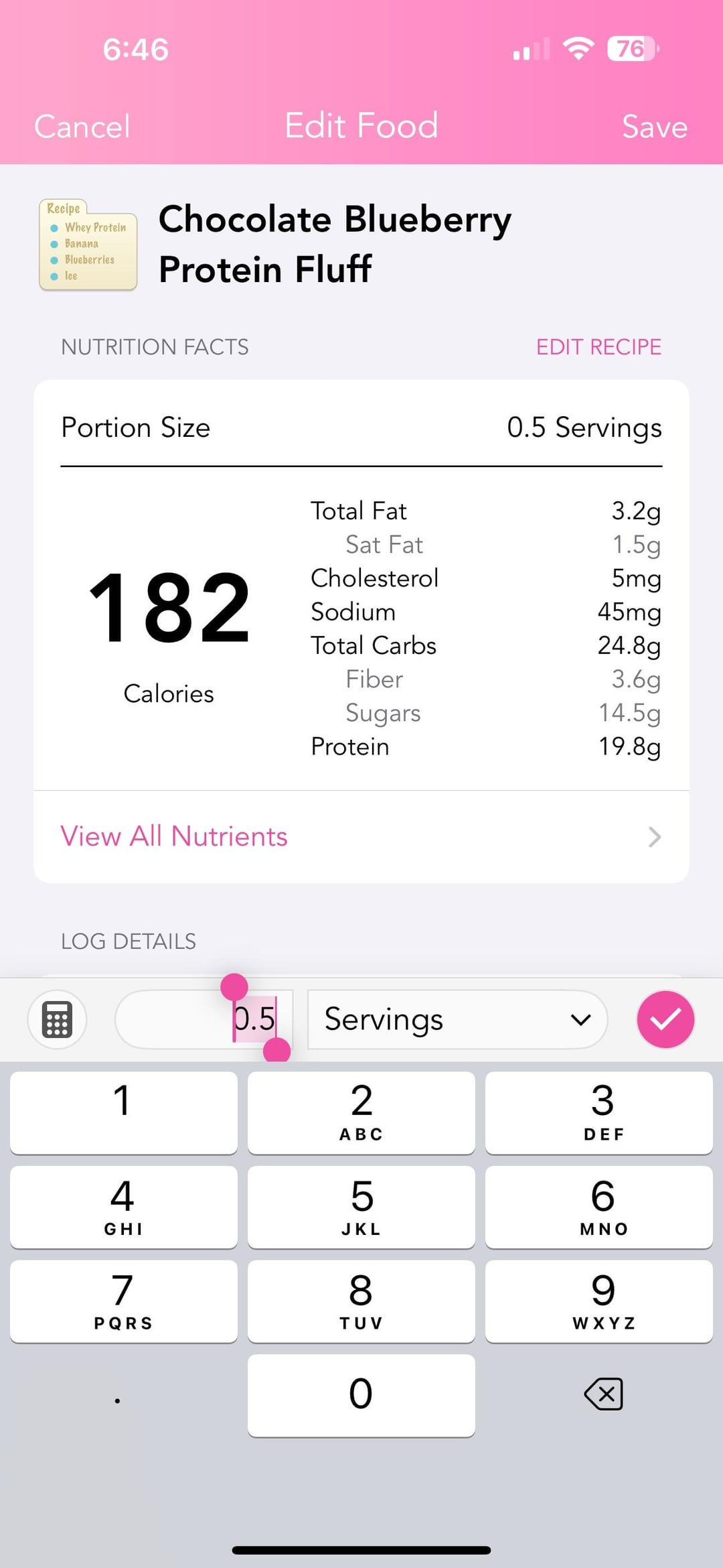 The screenshot of the ingredients for the full size recipe. Cut everything in half if you want the half sized.