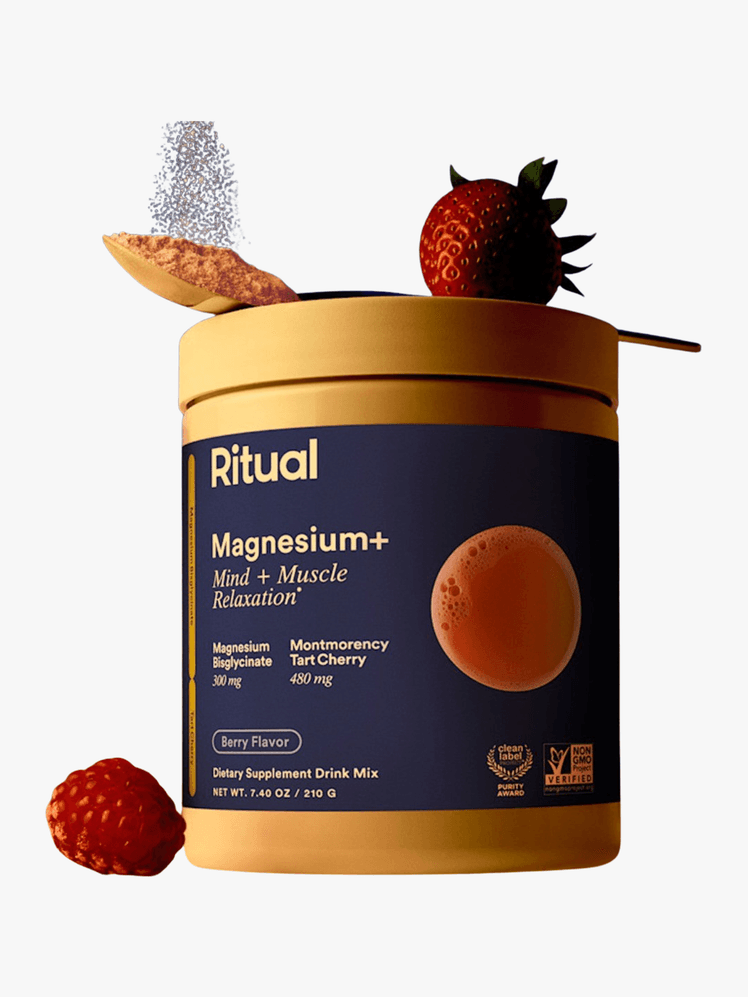 Supporting muscle function is one of magnesium’s most important responsibilities in the body, and that includes post-workout muscle recovery. Supplementing with magnesium—specifically, magnesium bisglycinate—can help accelerate muscle recovery, and potentially even provide a boost in the gym. A 2024 research review found that supplemental magnesium, when taken before strenuous exercise, reduced post-workout muscle soreness, improved performance, sped up recovery, and provided protection against muscle damage. Ritual’s berry-flavored Magnesium+ powder contains 300 milligrams of magnesium bisglycinate per serving, as well as 480 milligrams of tart cherry, a natural recovery remedy backed by more than 20 studies.