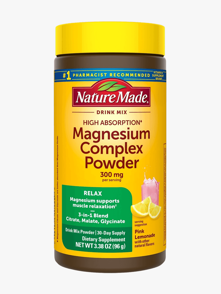 This pink lemonade-flavored magnesium complex powder from Nature Made is the perfect addition to daily hydration, post-workout smoothies, and pretty much any beverage in between that could use a sugar-free boost of flavor and function. It uses three sources of magnesium—magnesium bisglycinate, magnesium citrate, and magnesium malate—to provide support for a range of vital bodily functions, including energy metabolism, muscle function, mood regulation, and more.