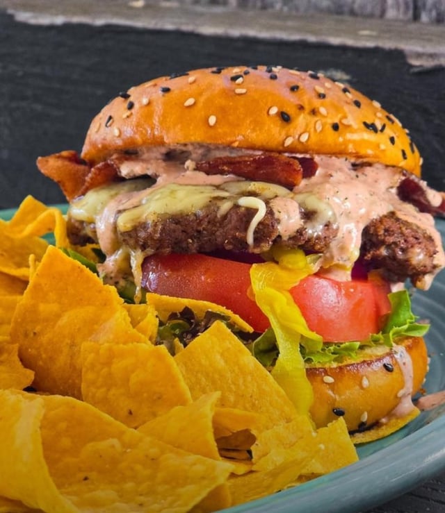 Salad on top. Always. Otherwise, it’s just a soggy surprise waiting to slide out the bottom like it’s trying to escape the burger life 😂