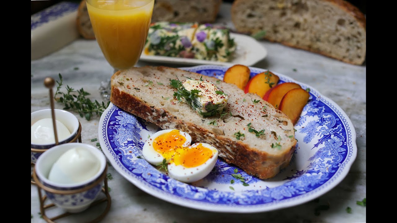 I can gladly enjoy a piece of my homemade bread with homemade butter, a soft-boiled egg, and fresh fruits for brunch.