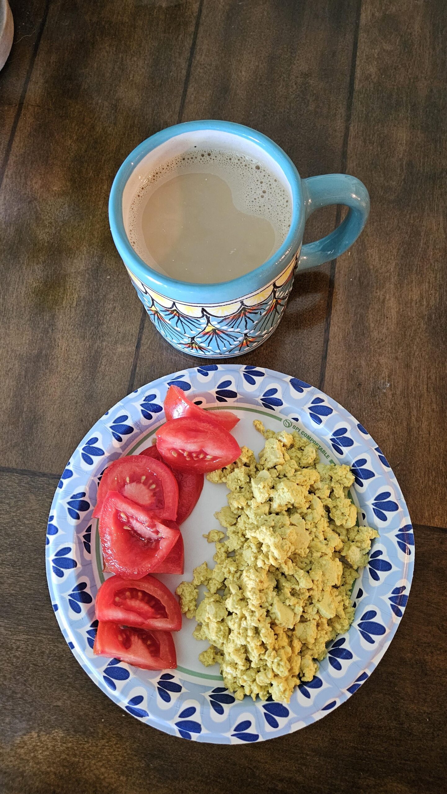 I had a block of tofu that I needed to use and went to my go-to scrambled egg recipe. It is sooo good!