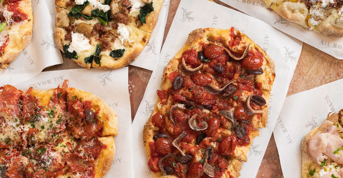 While the pinsas are served all day, the three panini on the menu are only available until 5 p.m. Each one is constructed from the same principle dough as the pinsas along with fillings like porchetta and grilled zucchini. Other Roman hits on the menu include suppli (deep-fried risotto balls), carciofi alla giudia (fried baby artichokes), and maritozzi for dessert (whipped cream-filled sweet buns). Longinotti and executive chef-partner Luca Crestanelli shaped the menu; executive chef Justino Quirino will manage the kitchens at All Roads and Bar Toscana.