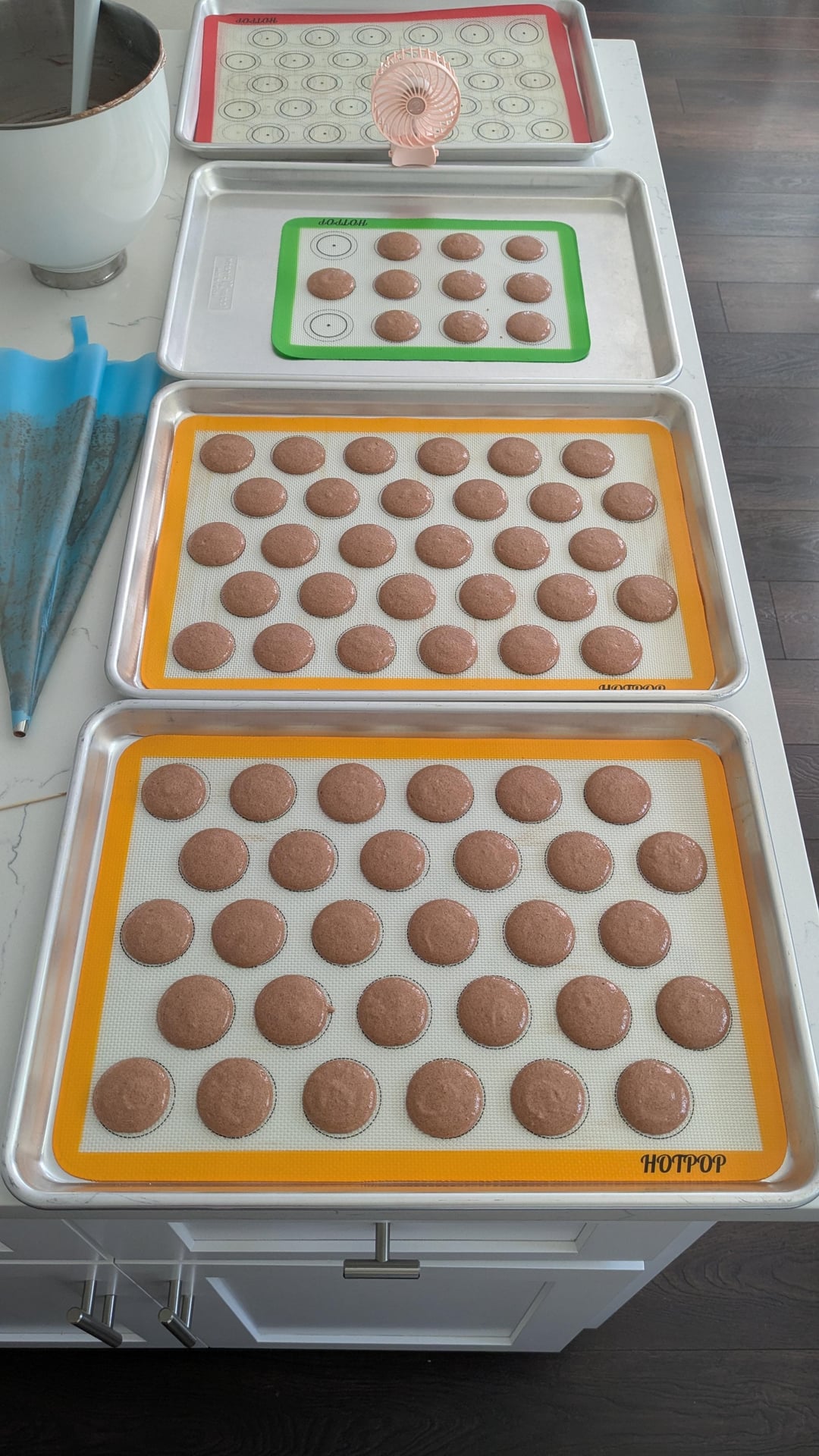 We made a few batches of ice cream recently and had a ton of leftover egg whites, so I've been making a bunch of macarons to use them up (because if I freeze egg whites, I forget they exist lol).