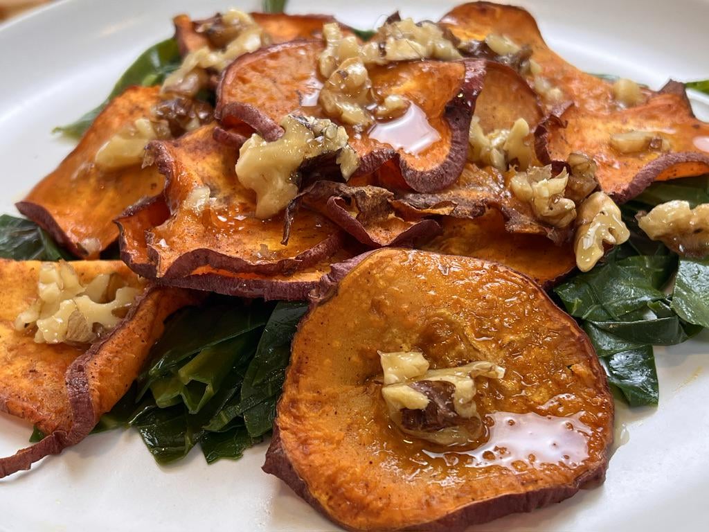 On the east coast maple walnut is a thing- I don’t see it much on the west coast despite it being a delicious combo- these sweet potatoes are a great side to any dinner – but with the holidays coming up fast it is a great side to bring to dinner that everyone will like! Full written recipe here : [https://www.catsvegankitchen.com/the-bestveganrecipes-1](https://www.catsvegankitchen.com/the-bestveganrecipes-1) and quick short video directions here : [https://youtube.com/shorts/EUR3MQi-PnA](https://youtube.com/shorts/EUR3MQi-PnA)