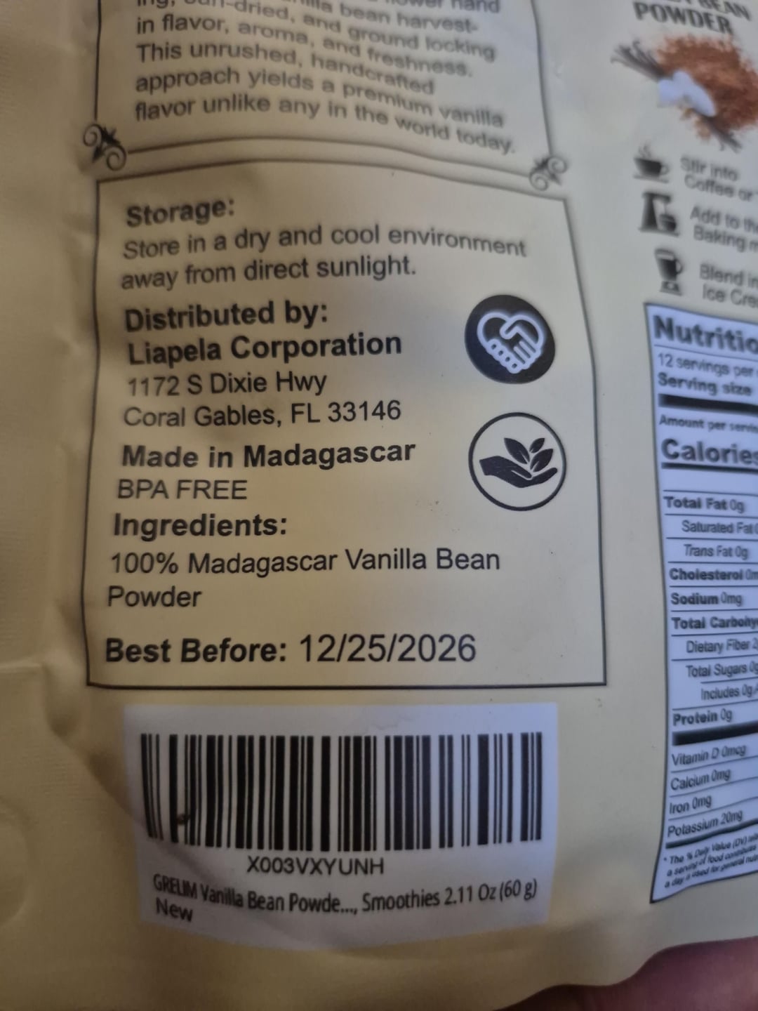 Or, my bet, they’re playing fast and loose with vague distinctions. 100% Madigascar Vanilla Bean Powder to a layman would be vanilla beans powdered, but it could be a powder containing some plurality of vanilla bean, treated and blended with other ingredients, but the final product is 100% that powder blend. It’s the difference between powdered vanilla bean and powder of vanilla bean, basically.