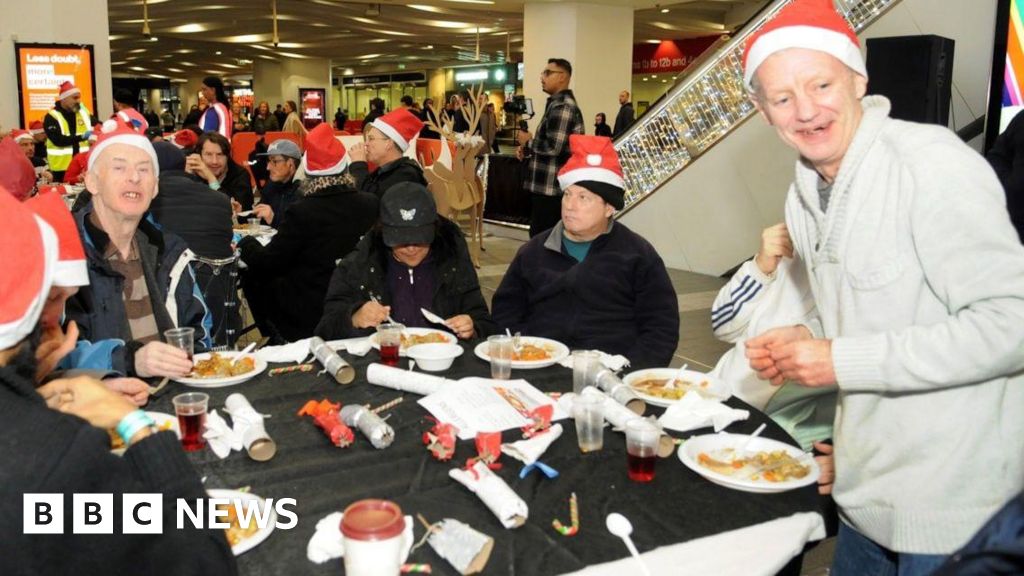 Up to 300 people will receive hot food, gifts and entertainment from carol singers, between 14:00 and 17:00 GMT on Tuesday.