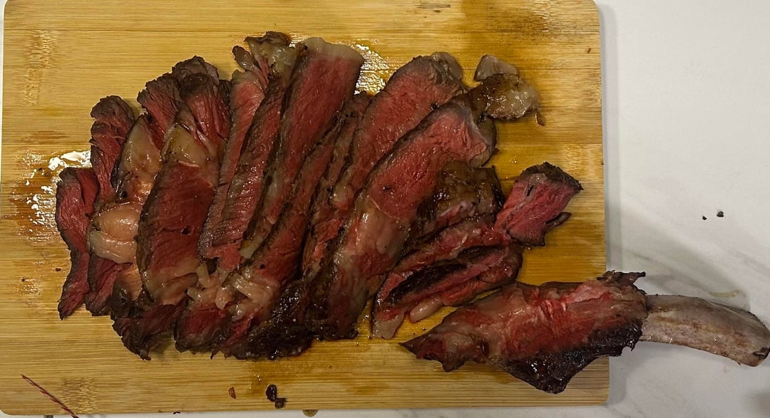 Followed Seriouseat’s recipe – reverse seared bone-in ribeye to 115F, and 30 seconds for each side on a ripping hot cast iron pan.by nigelhog 18 Comments BetaPositiveSCI 5 months ago Looks great! Better gimme a piece just to be sure though, I’ll let you know Keelit579 5 months ago Give me it and I’ll let you know Hour-Stable1054 5 months ago goals right there. MagazineDelicious151 5 months ago You nailed that bad boy. Emotional-Egg1408 5 months ago Is that a burger with a bone? A TBurger? Indubitably_Ob_2_se 5 months ago I’d slap my Jimmy with it.I hope that’s the right colloquialism. WesleyS1996 5 months ago Perfect!!! theotheronenotme 5 months ago That’s spectacular. Away-Worldliness-352 5 months ago Nom nom nom nom Icy-Yew-0837 5 months ago I didn’t realize tomahawk steaks could be ROUND — !!! AMAZING!! Traditional_Sky_7462 5 months ago Got any horseradish? That’s fuggin beautiful. A+ DoUGt2CldDistVryOftn 5 months ago Well now I’m suddenly dying of hunger so. Shifuman74 5 months ago Nice sear! SevereFun2463 5 months ago Looks to me like you perfectly nailed it! Nice work! ivywitchy 5 months ago Can I be your friend? U did a great job 😍 _Lunoctis_ 5 months ago Fuuuck 🥩 Thenewguyaround123 5 months ago Gosh i want to eat that fat so much rn mitchellpatrice 5 months ago Yummy