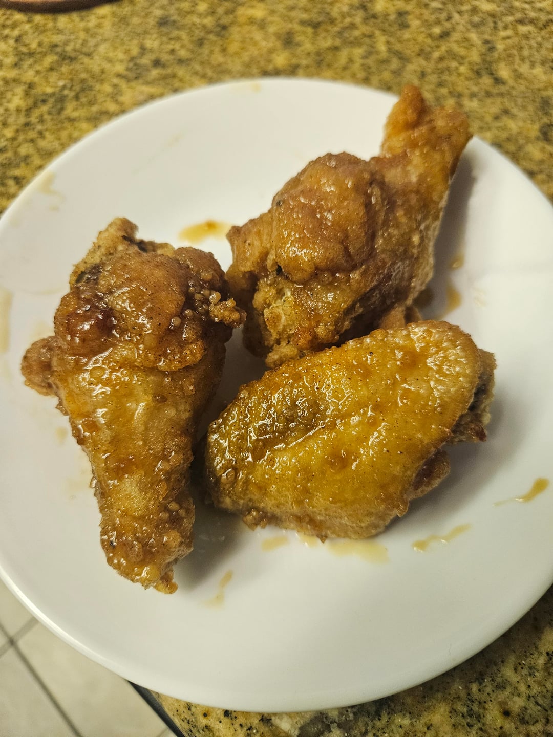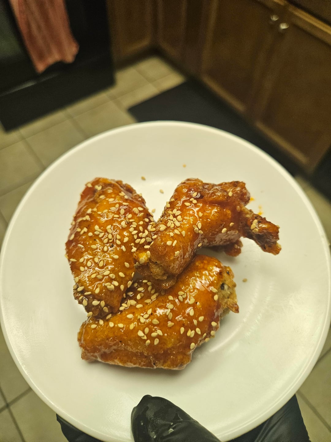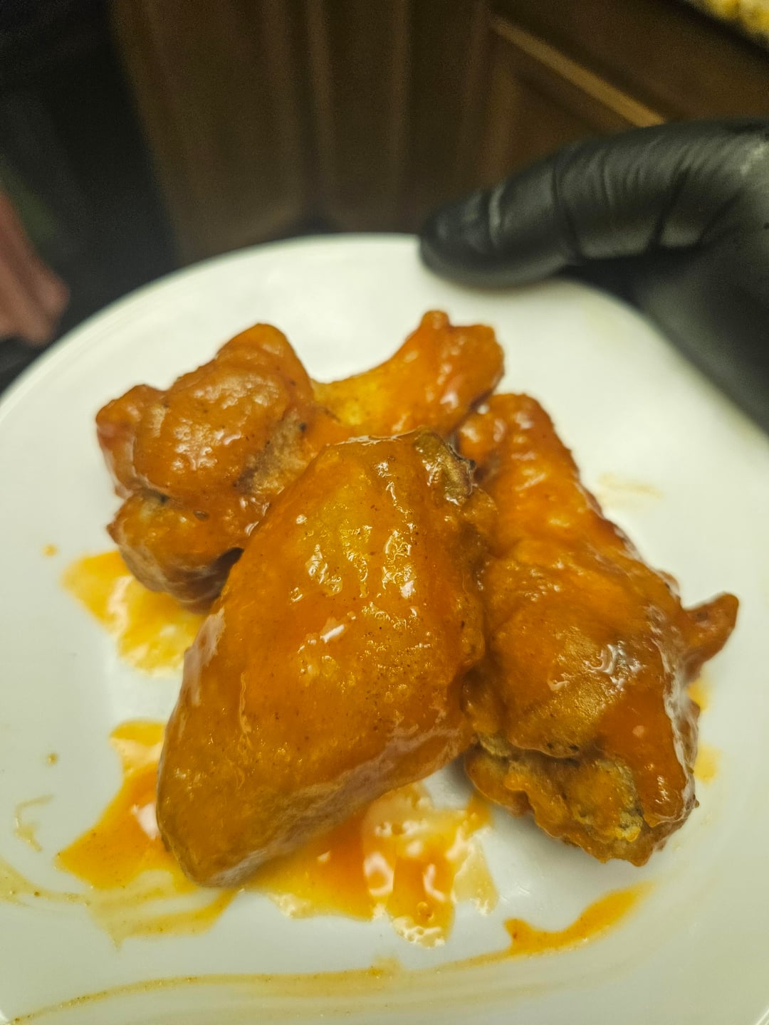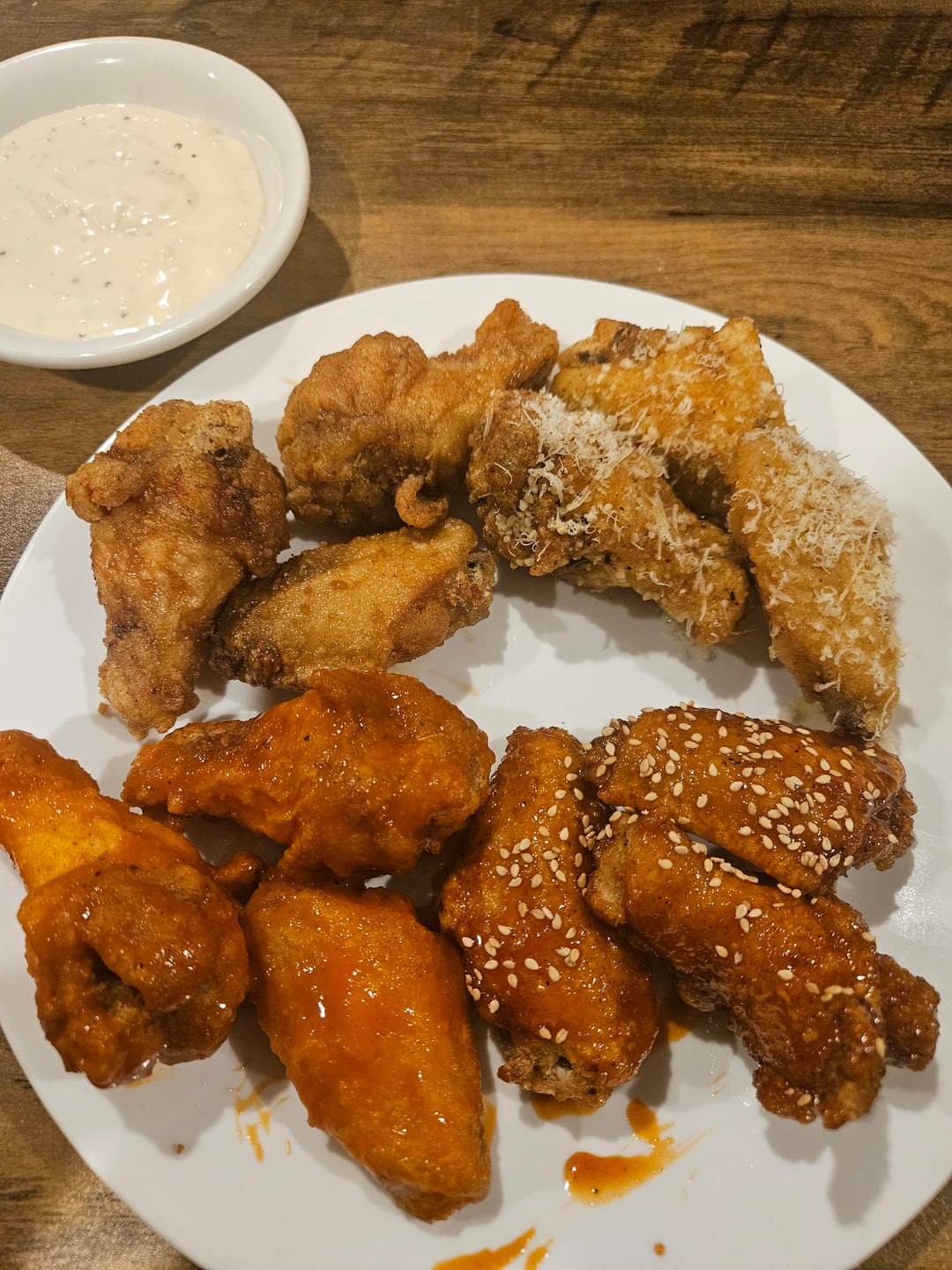 Garlic soy, garlic parm, honey gochujang, and classic buffalo.