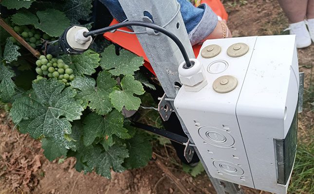 A heat wire, powered by solar energy, is used to protect the vineyards against frost.
