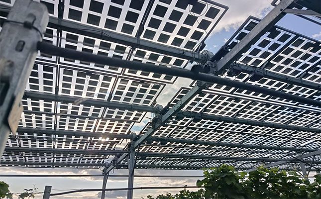 She has also seen trials of vineyards covered by solar panels (a practice called agrivoltaics) which generate electricity while reducing evaporation and protecting the grapes against hail. In some of the trials, heat wires, powered by solar energy, were used in the trellis supports to protect the vines against frost.