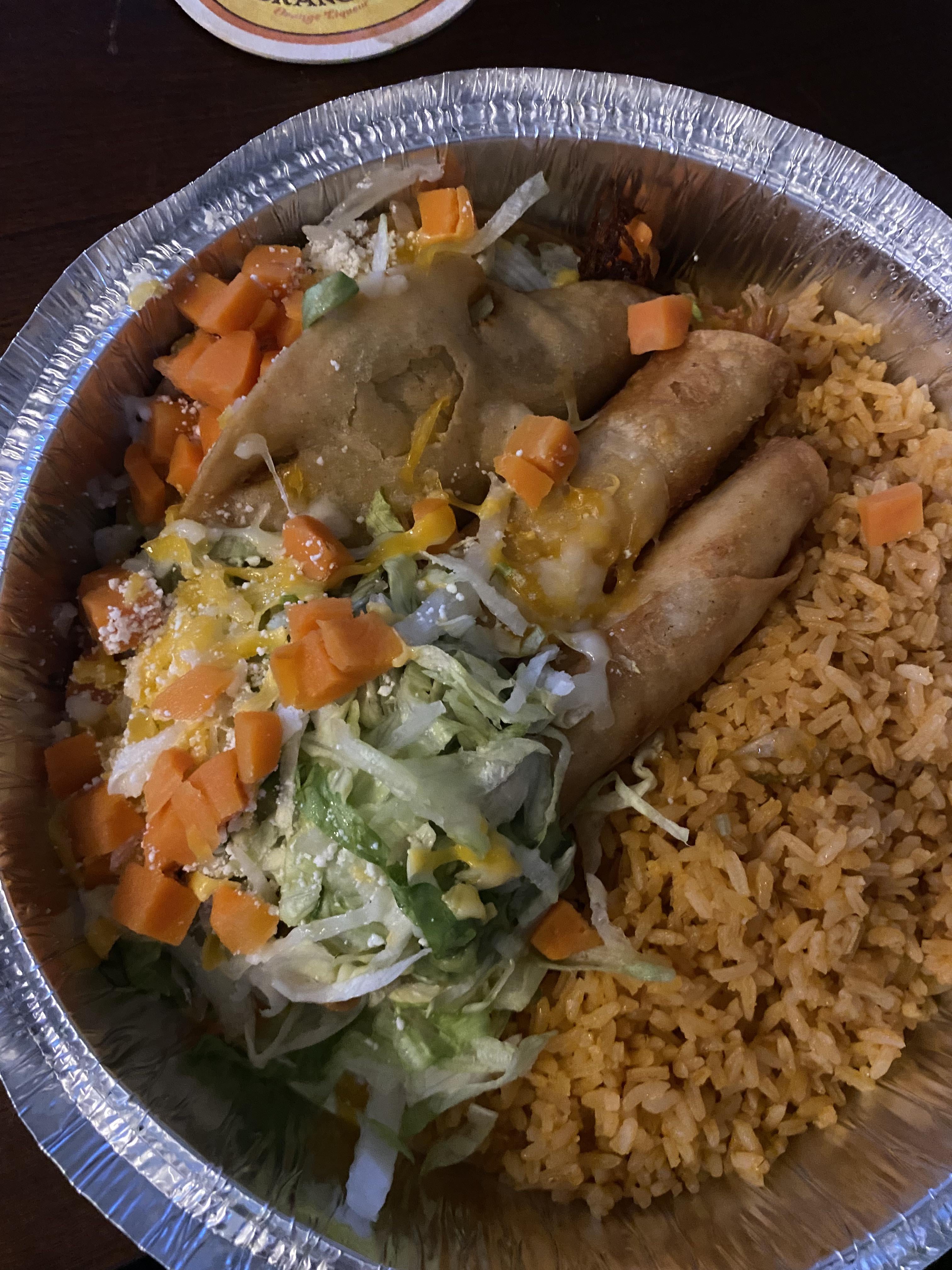 Shredded beef taco and chicken taquitos from local Mexican restaurant in the very yt PNW. I’m not Mexican but I don’t think I’ve ever gotten food from a Mexican place like this 🥴 it was so very bland.