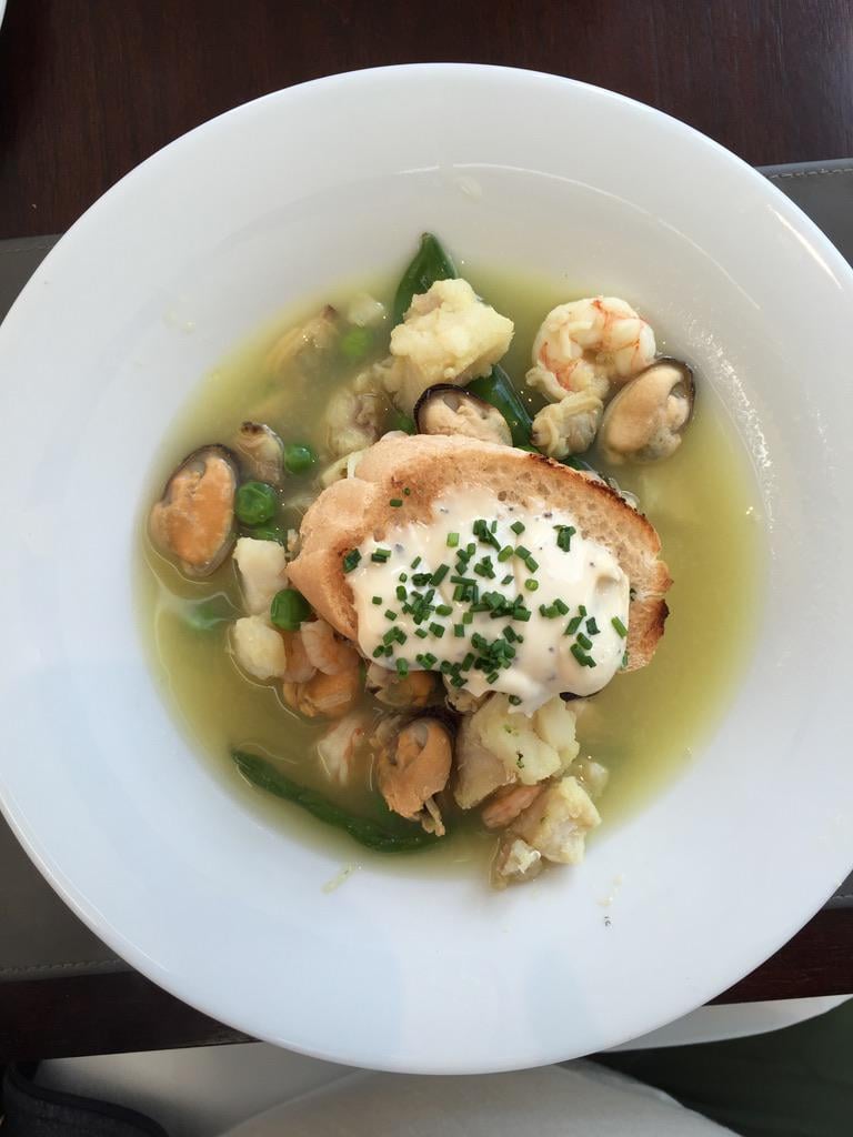 Another amazing Irish meal – a recommendation from my B&B proprietor – at The Europe Hotel. Couldn't afford to stay there, but could afford "fancy" lunch of a pristine shellfish broth with prawns, mussels and fish with vegetables. Toast with some aioli & chives. I could live my life eating solely Irish seafood…