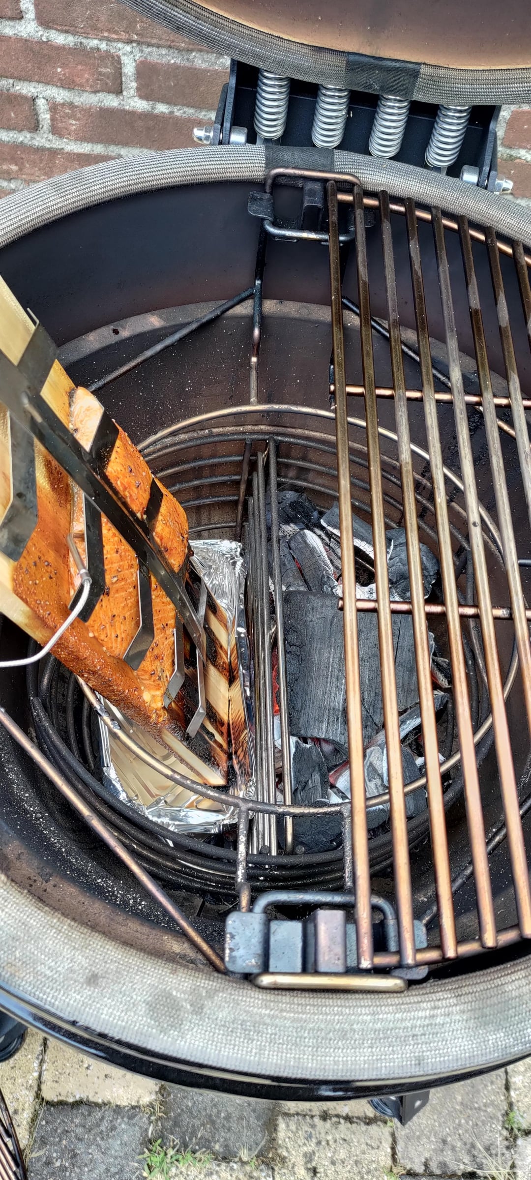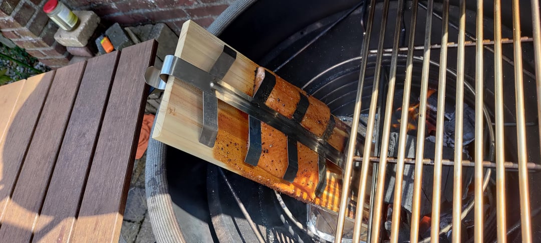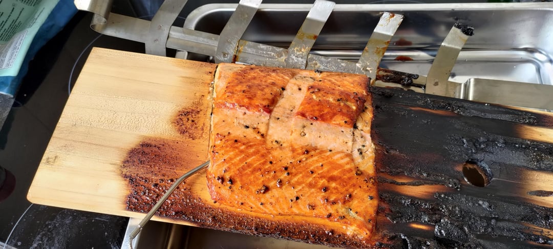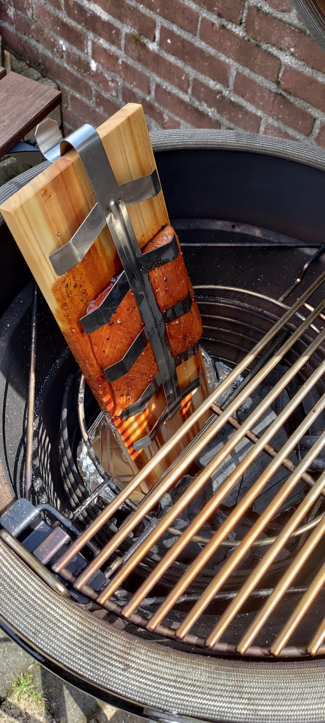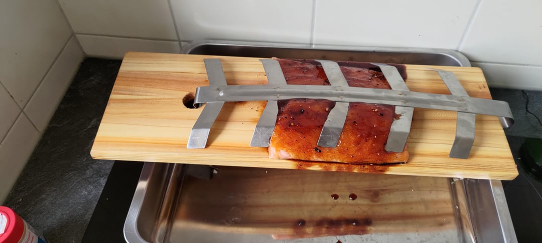 afterwards I dropped in the smoking board into the tray, and have grilled the Salmon till a internal temp of 63C