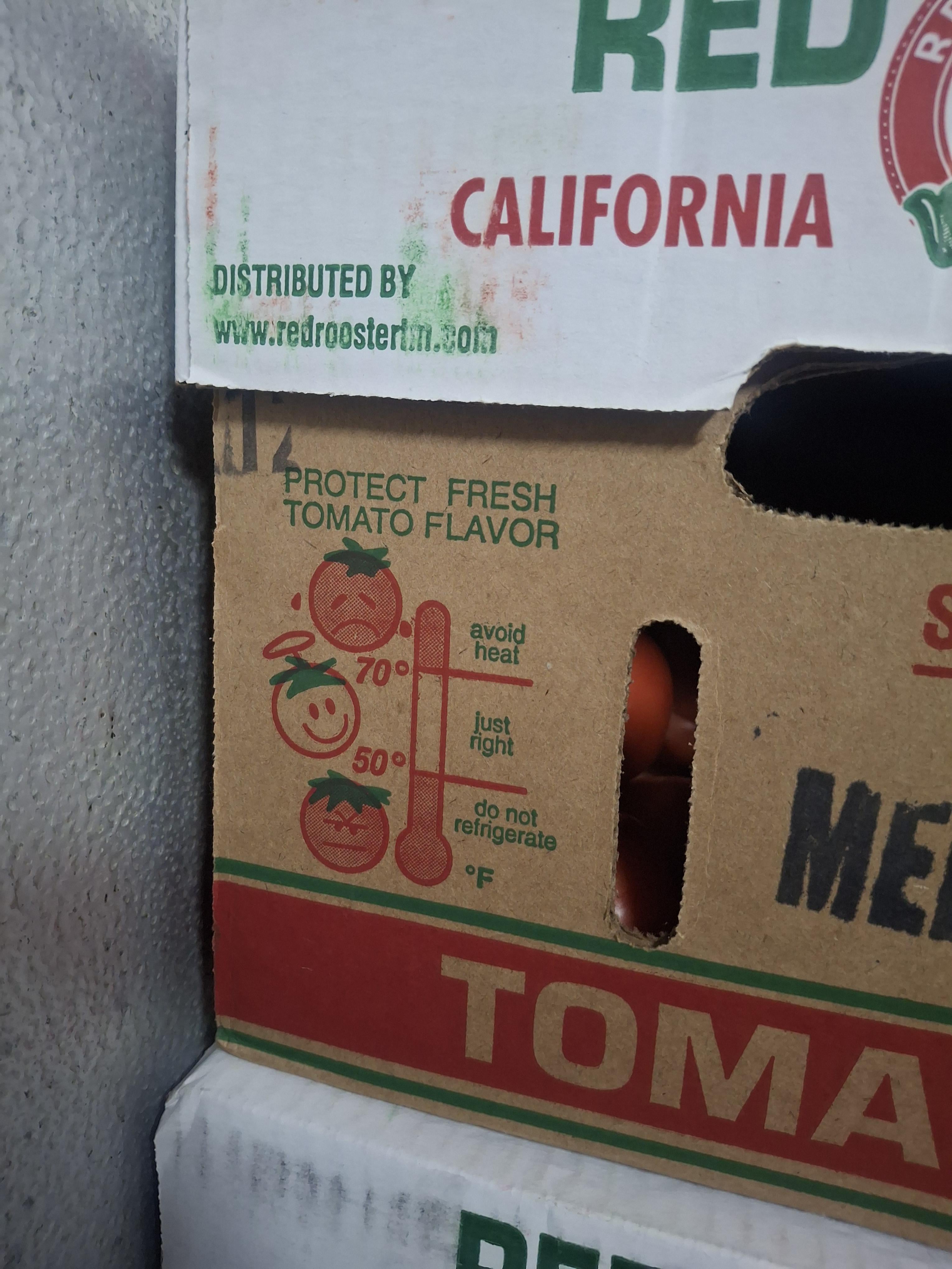 Our new tomato supplier has this cool infographic on the box (that we keep in the walk-in, at °37F)