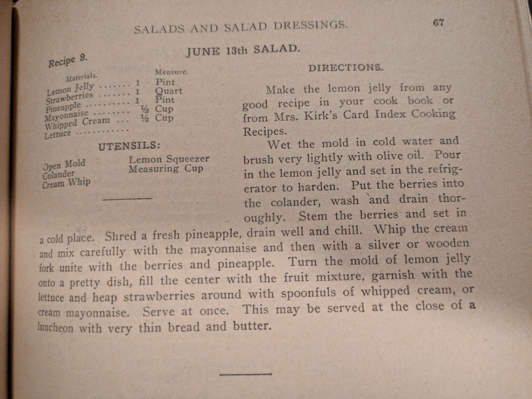 I’m confused. There is no way this is from a 1917 cookbook. There were no refrigerators then as far as I know; the most you would have had is an ice box which is very different. Where on the book does it indicate 1917?