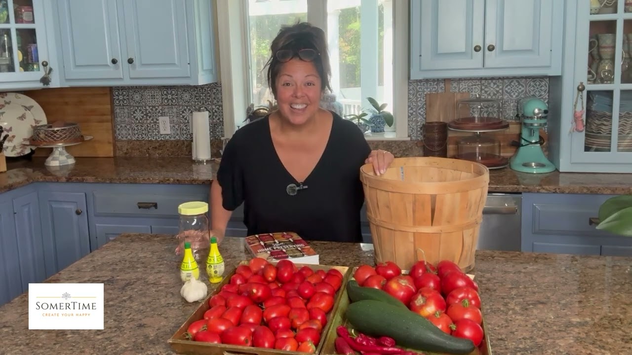 How many of you have this issue? You put all these great intentions in in putting together a beautiful garden for your summertime harvest, whether it’s for flowers or for vegetables, and you get your garden started, and then life happens. You either go on summer vacation or something happens with the job or you get another project and you get distracted and then next thing you know, you have all this stuff growing in your garden. You say, “Ugh, now what? I had all these good intentions. Well, I want you to know you’re not alone. I feel the same way. I had the luxury of some time over the summer because I lost my job in April. Now I’m working again starting in in August. And even though I had all that leisure time doing things in the garden, I also did other projects. And so by the time I started working again this month, all of a sudden I looked at my garden and went, “Oh my gosh, I forgot to harvest the broccoli before it, you know, flowered and then I can’t eat the broccoli anymore.” Or, “Oh no, look at my tomatoes. I’m totally behind harvesting those or wow, I missed a bunch of flower opportunities.” So this episode is not two things. Number one is to empathize with all of you to say you’re not alone. This happens to me too. But the second thing is to say, “Hey, no worries. That’s the beauty of a garden. Clean it up a little bit. Harvest what you can. See what else can har you can harvest for the next month or so before the weather really turns so you can truly enjoy what your garden’s producing. So stick around with me for the next few. We’re going to start with harvesting some tomatoes. We’re going to make something in the kitchen with it. And then we’re going to look at other things like what to do with herbs, maybe some flower arrangements, and also let’s just talk about what else is going to come up in the garden for the rest of the season. So stick with me everybody. Welcome back. And oh yes, if you haven’t already, please subscribe. I have to thank all of you who are returning. We are on a mission to get a thousand subscribers by Halloween. And in the last two weeks alone, we’ve gotten we doubled our our community. We’re over 600 as of this of as of this recording. So, thank you. Thank you so much. All right, let’s get our gardening on. Woohoo! Summer time, peeps. Let’s go. [Music] Well, good morning, summertime peeps. I have just spent a few minutes harvesting some Roma tomatoes. And under here, some heirloom tomatoes. And this episode is all about what to do with these tomatoes. Let’s see what we can do with these tomatoes. Let’s sort them out and decide which ones are we going to can as whole whole tomatoes with maybe some peppers and some herbs. And then do I have enough to make a sauce that I can also can so I have some extra homemade tomato sauce for my pantry. So, let’s try that out. I am back in my kitchen and now we’re going to do something fun with the produce from my garden. I know I’ve been focused on Halloween for the last few episodes, and trust me, I am antsy to decorate. But in the meantime, just as f as fall and Halloween around the corner, all the work I put into my garden over the spring and summer, I want to make sure I literally take advantage of the fruits of my labor. Now sadly because I have been either distracted by shopping a little bit or I also not sadly happily started a new job my days are a little different and I don’t know if any of you can relate to this but you have all these good intentions to do certain things that you’re growing and then the next thing you know things have passed and you’re like h I should have could have. So, what I wanted to do today with you is to show, you know, if you’re in the same boat as me, what can you still do with the tomatoes that maybe are a little past their prime or what can you do with the tomatoes that you do have, even if you’re not hungry to eat it, you know? So, can we can some? Can we make a sauce and preserve them? Um, the other thing that I know right now, I have a ton of blackberries and I did a few harvests and then I let a couple of days go by. Not all of them are ripe anymore. So, what can I do with that? Uh, I have a ton of herbs in the garden right now. And a lot of times, I don’t know about you guys, I love it just because I’ll smell the herbs every day and put my hand in the thyme, hand on the oregano, smell the basil, but then the next thing I know, the first frost comes and I look at these beautiful plants and think, I’ve done nothing with them. So, I don’t know how much I’ll be able to do in this episode, but over the next couple of weeks, I will share with all of you what I’m actually doing with the oregano, the basil, the chives, etc. Yes, I put them in some of my recipes, but is there anything else, any type of special butters or sauces or infused oils that I should be taking advantage of that now so that I can continue to enjoy them going into the winter months? And let me just say, I know a lot of you out there, you’re already doing this. So you’re like, “Ah, Summer, catch up with us.” Which I agree, which is what I’m trying to do. Everything that I do on this channel, candidly, has been self-taught, or I just fell into. So, uh, if any of you have better tips and tricks for what to do with tomatoes, what to do with herbs, what to do with decorating, anything, I love to hear your feedback because you helping me be better at what I do also truly creates my happy. Speaking of that, before I get into my first task here, I just want to remind all of you that’s what my channel is all about. It’s about creating your happy through things that make you have joy in your home. So whether it’s decorating for the holidays, organizing your spaces, gardening, eating, cooking, a lot of times for me it’s having a wonderful afternoon tea. So if they’re f this is your first time to my channel, that’s what 