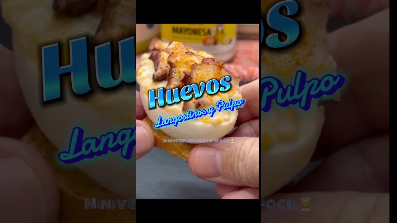 [Música] Hoy vamos a hacer huevos rellenos con langostín y fruto. Después de haber cocinado los huevos, separamos las yemas, cocinamos los langostinos, vamos a picarlo junto con el luego vamos a hacer la mezcla que para el relleno. Vamos a llenar eh los huevos después de cocinado. Luego vamos a colocar el pulpo ya sofrito encima del huevo y listo.