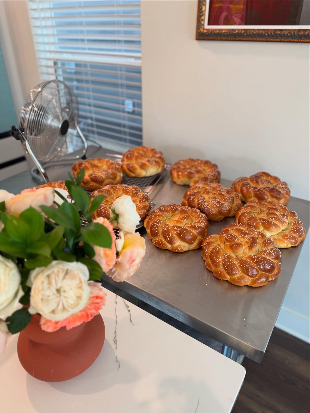 I got the opportunity to cook in a commercial kitchen today so I made the biggest challah I could. I’ve been cooking for a food festival so I also made 30 smaller loaves as well. I think I’m done for awhile 😅