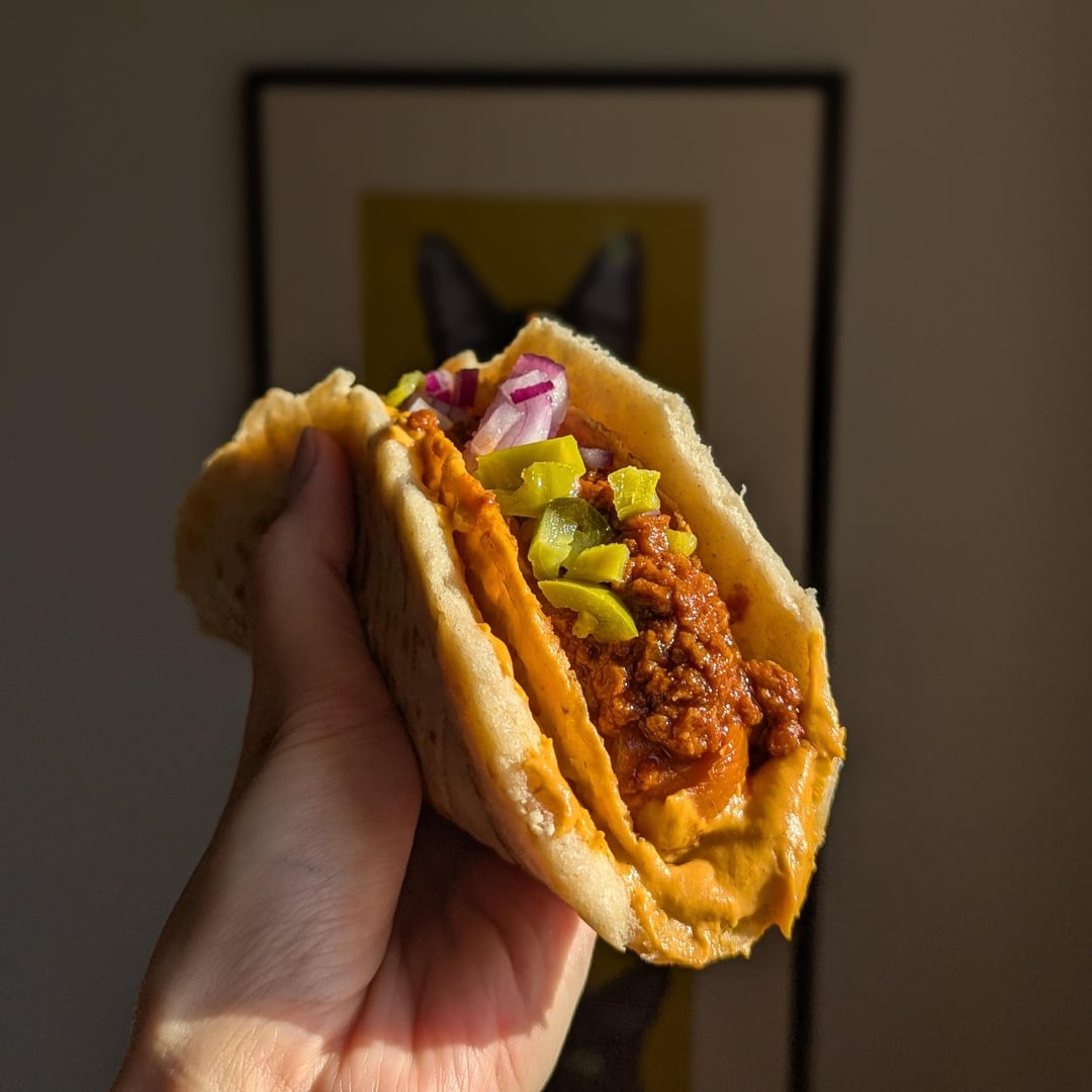 carolina reaper chili cheese glizzy gordita crunch. 😈by Alextricity 2 Comments DaisyPuffs4sure 5 months ago Did you make the outter soft shell? Or is it pita maybe? Sad-Loan2007 5 months ago oooh fresh reapers!
