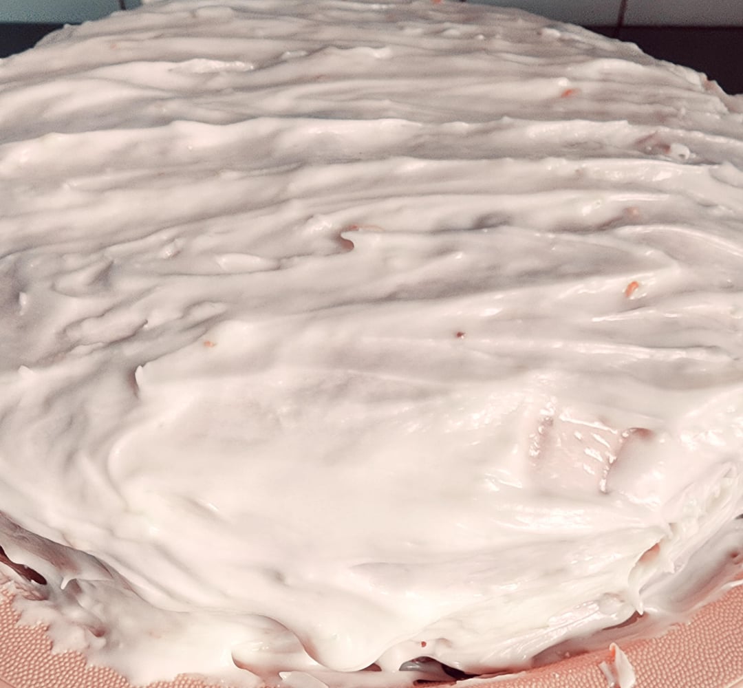 Made with cream cheese. So delicious on angel food, sponge and chiffon cakes.