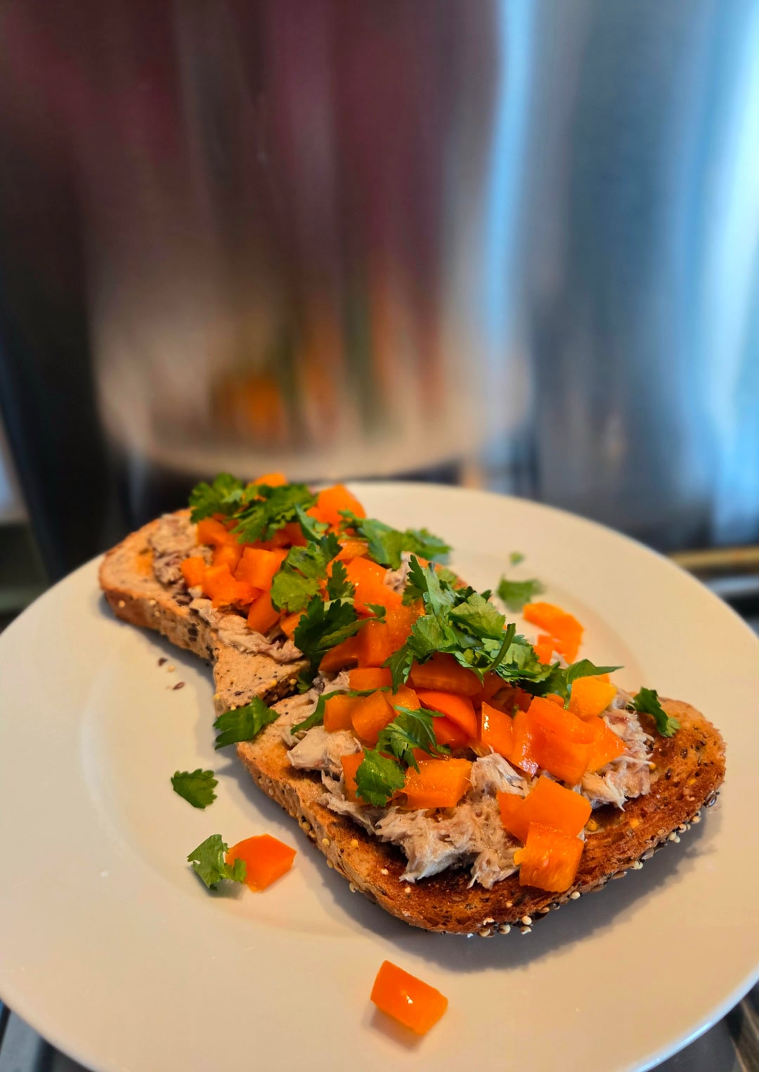 I wanted some crunch but it's the last day before new groceries arrive, so veg pickings were slim 🎻 made do with some chopped pepper & coriander.