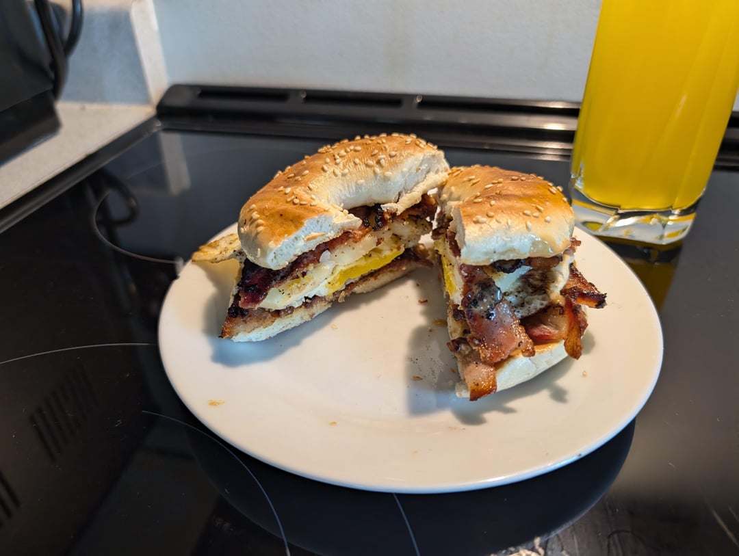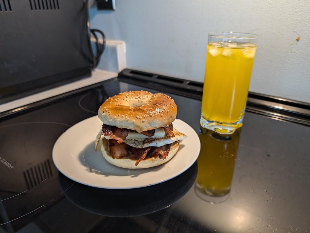 I wanted to wash it down with a Mimosa but didn't have any bubbles, so I made a screwdriver instead.by fullraph 1 Comment No_Idea609 7 months ago Wow, would crush the sandwich, slam the drink and nap for awhile. Great job!!