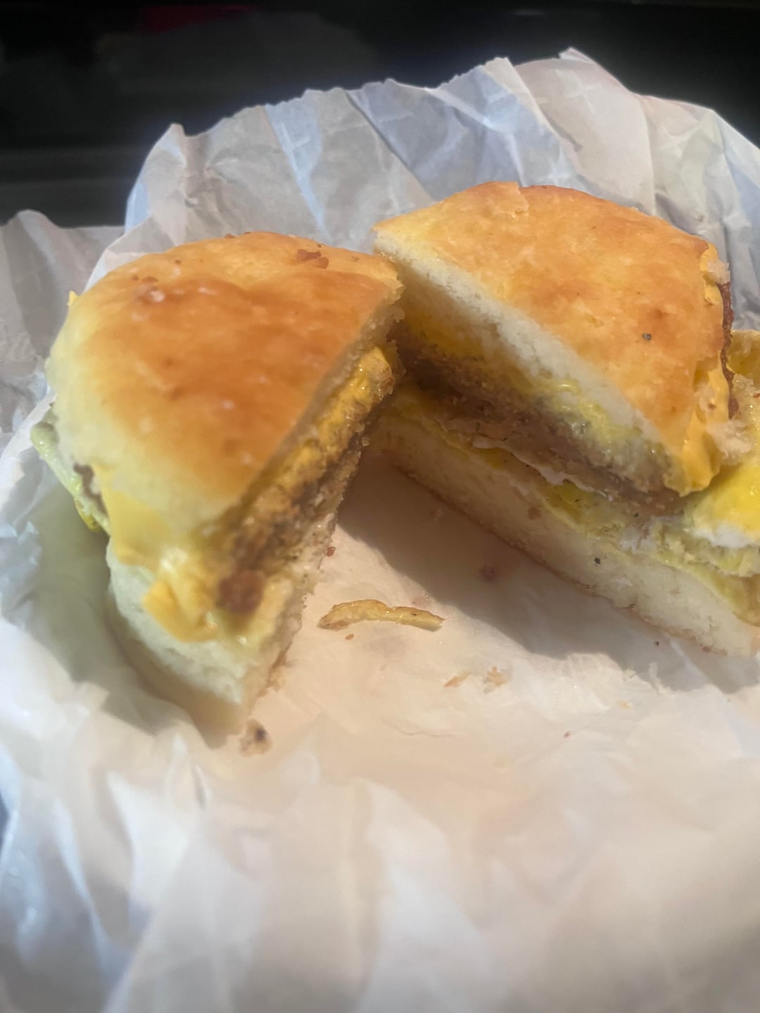 There’s something about a biscuit, egg n’ chee sandwich that grabs me by the nut pouch and transports me to Narnia. Beautiful.