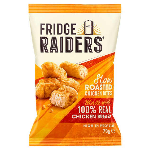 With a long ingredients list, this snack is far from ‘just chicken’. It is a good source of protein, but beware the number of additives and high salt content at 1.1g per 70 g pack.