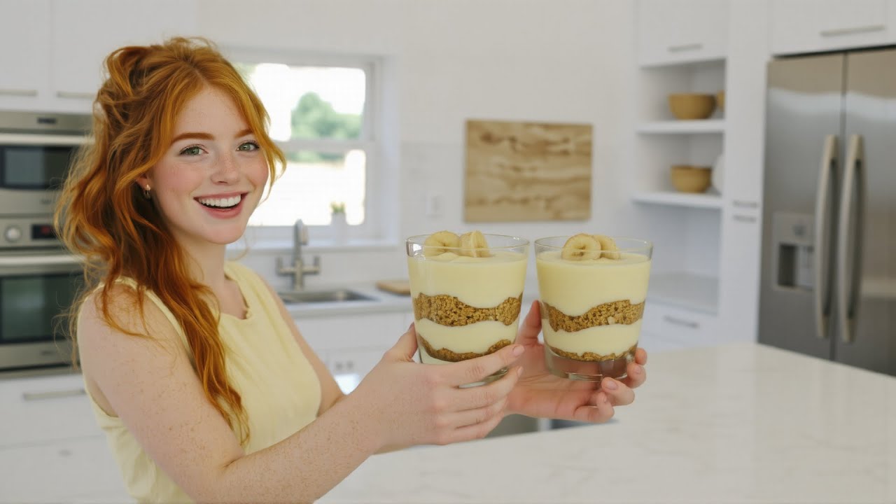 Hey everyone, welcome to my channel. In my kitchen, let’s get straight to making our delicious dessert. Into our pot, I’m adding 3 tablespoons of cornstarch, 2 tbsp of flour, one egg yolk, and one cup of sugar. Now, I’m adding 5 cups of milk to the pot. And before it hits the heat, I’m going to give it a really good whisk. All right, let’s put our pot on the stove. We’ll keep stirring until it starts to boil. Our pudding has reached those lovely little bubbles. See, it’s starting to boil. Once it starts boiling, we’ll keep it on for just one more minute, then take it off the heat. Let’s let our pudding cool for about 10 minutes, stirring occasionally. Grab a pack of biscuits and let’s get them into the food processor. You can really use any cookie you like for this dessert. And now we’re going to process these until they’re like a fine crumble. Let’s add a packet of whipped cream topping mix and give it a good whip with our mixer. I’m going to be making these in these cute little cups. Feel free to use whatever serving dishes you like. So, I’m just going to grab a scoop here. I’m adding a scoop of our pudding into each cup. And here’s the second cup ready to go. Now, let’s add a spoonful of our crushed biscuit topping to each one. I’m just placing these sliced banana pieces around the edges. Now we’re going to evenly distribute the remaining pudding amongst them. and topping it off again with my biscuit crumble. I’m going to add some banana slices for garnish and then pop these into the fridge to chill for at least 2 hours. Let them rest. Our chilled dessert is ready. And I really want to show you the consistency. They turned out amazing. If you enyed.