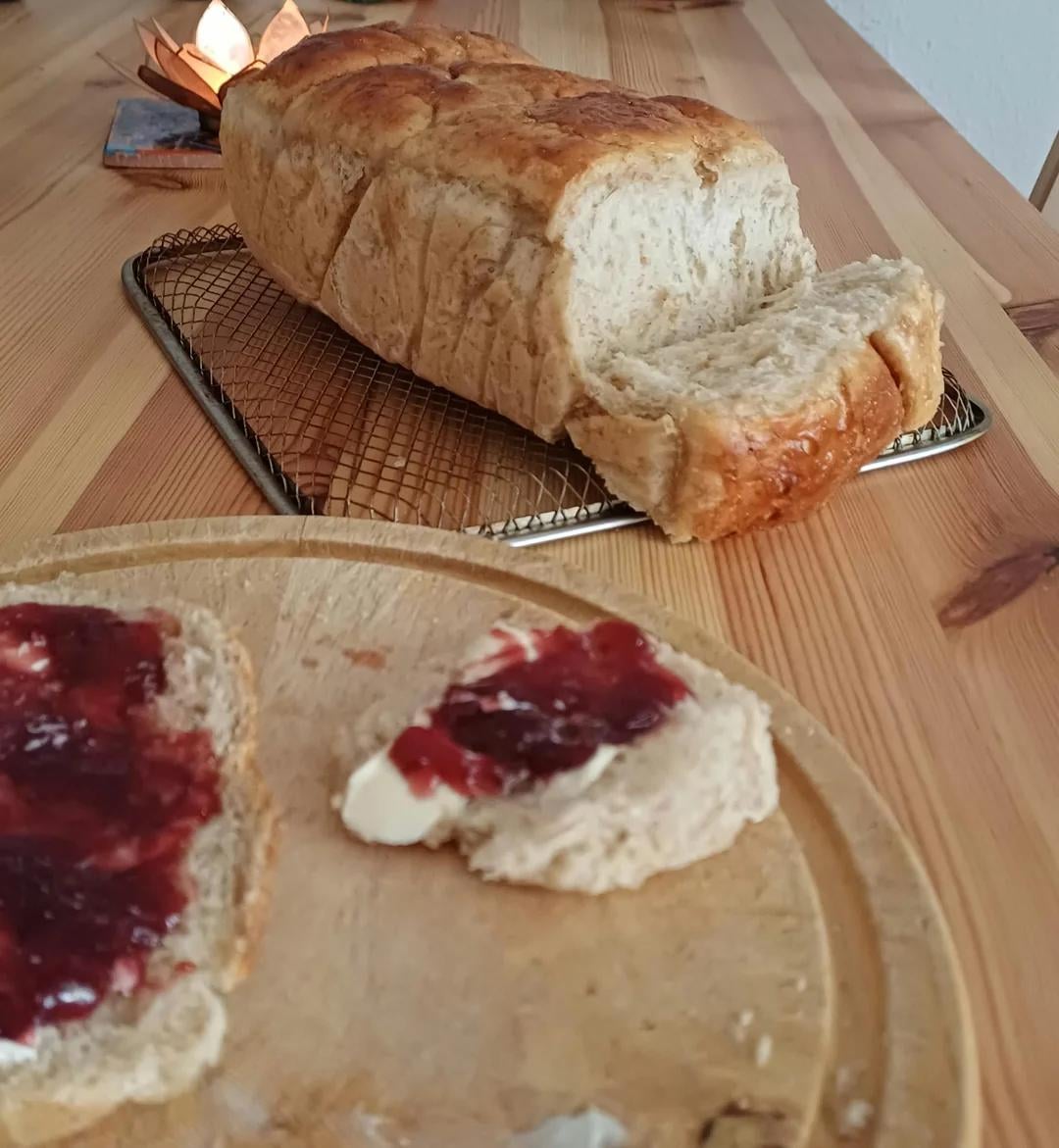 Since my sourdough starter needed a refreshment break, I decided to make some last minute, late night bread. Milk bread seems easy enough, right? Wrong. I had to knead this bad boy by hand, for probably more than half an hour. Arms are recovering. Read the recipe wrong and let it rise in the bowl instead first of shaping directly out of the fridge. No worries, it survived a third rise, and for the first time making this bread, it tastes amazing!! So soft and fluffy and melt in your mouth.