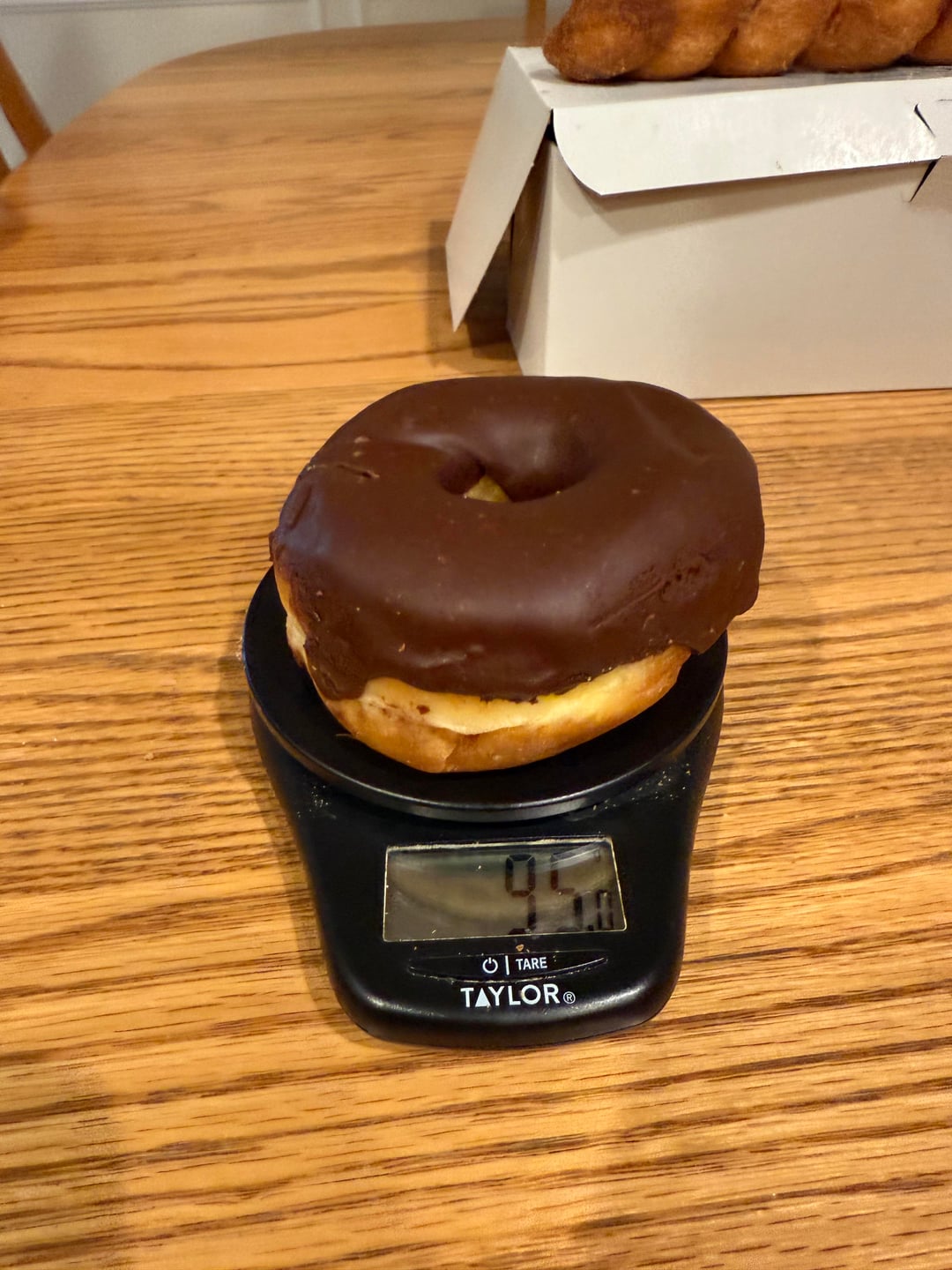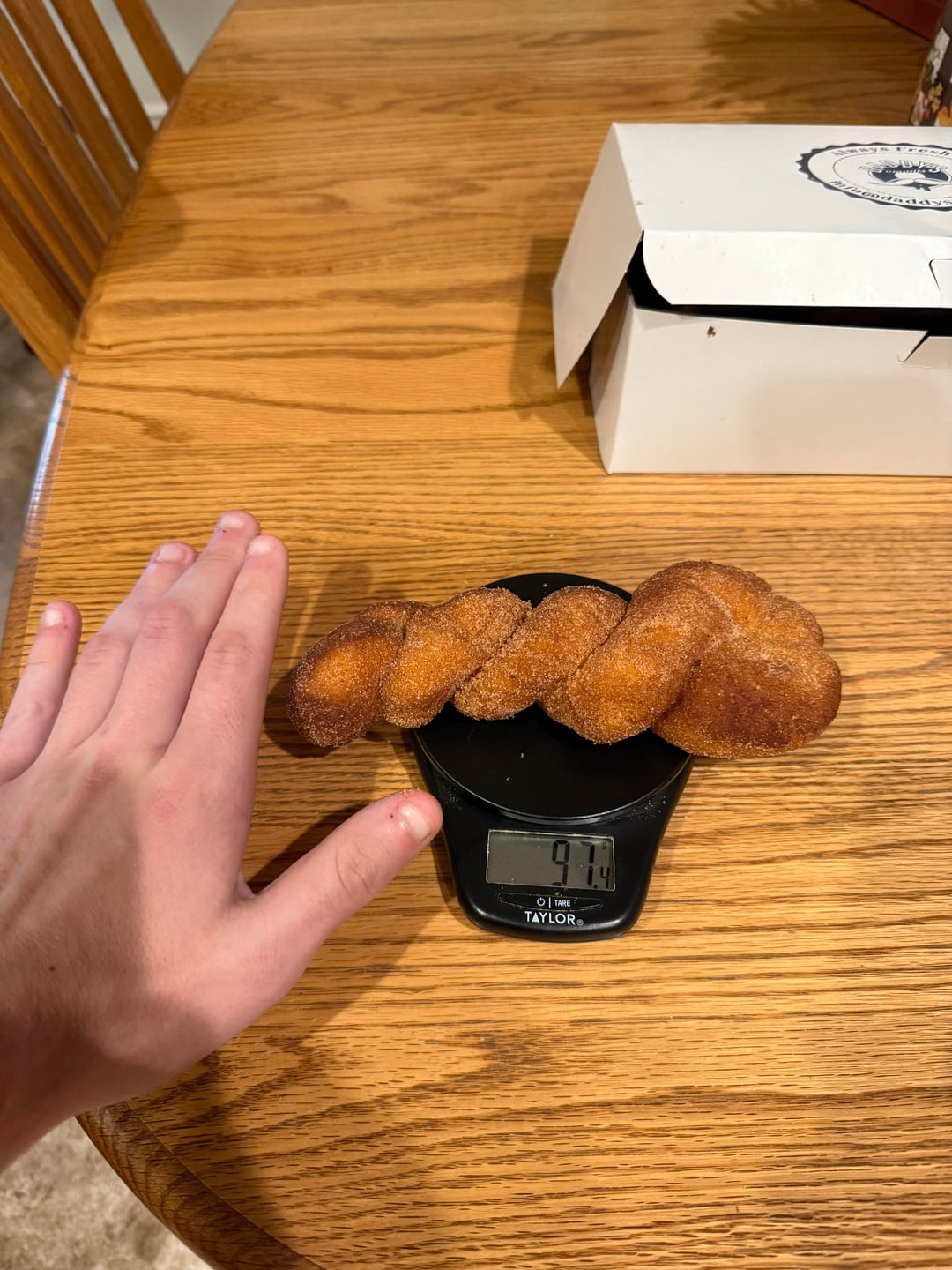 I was thinking ~450 cal for the yeast cinnamon twist, and ~480 cal for the yeast chocolate frosted. Thoughts? by JustOgo 4 Comments Disastrous-Bat4811 2 months ago Your hands are huge Regina_Phalange2 2 months ago 300 cal. HeeyPunk 2 months ago Smallest scale I’ve seen used for food haha what the Dalibongo 2 months ago 275
