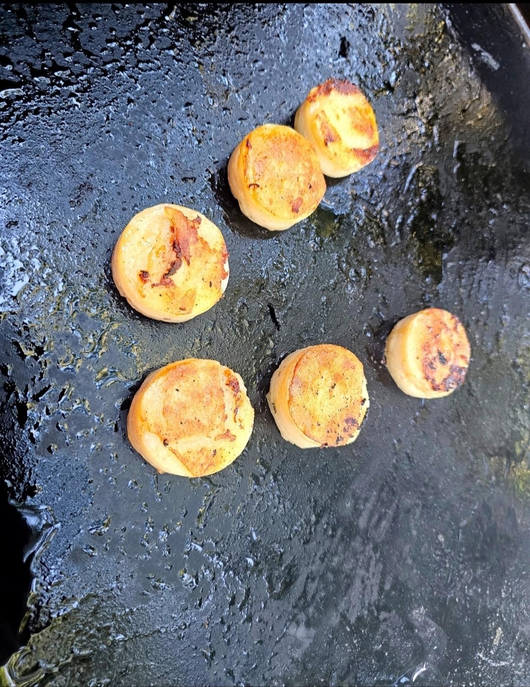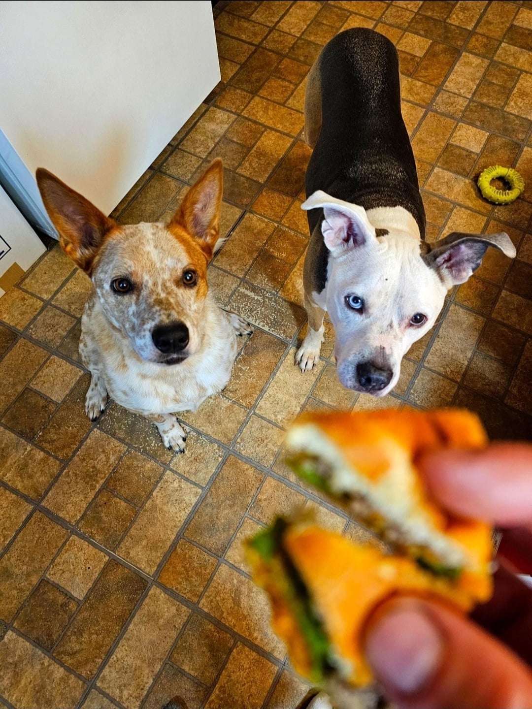 The other stuff you see was some linguiça that just needed to be cooked, it got used for some portuguese kale soup later, potato paves that were leftover from dinner but are great to brown on a flat top and better than fries, and of course a dog friendly slider with pumpkin, celery, and carrots for my buddies 😁