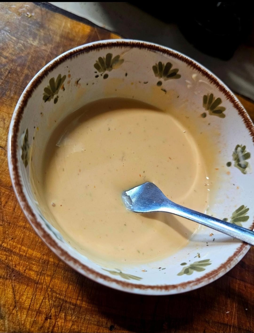 These are easy and definitely satisfy that fast food craving you sometimes get. Flatten the patties and use a straw to poke holes, it's a little easier to do if the meat (and fake meat) is cold and firm but not quite frozen. Mince some onions, and make some burger sauce. Mine was mayo, pickle juice, ketchup, mustard, garlic powder, and dill.