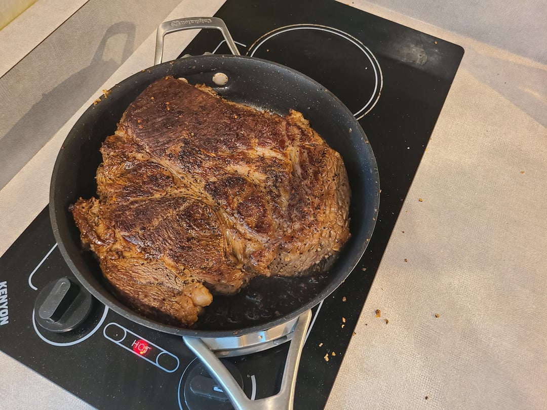 That’s either a monster sized steak or a Hobbit pan 😂. Either way the result looks great.