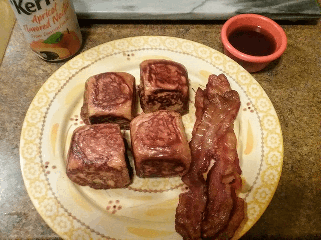 French toast made with Hawaiian rolls (and bacon)