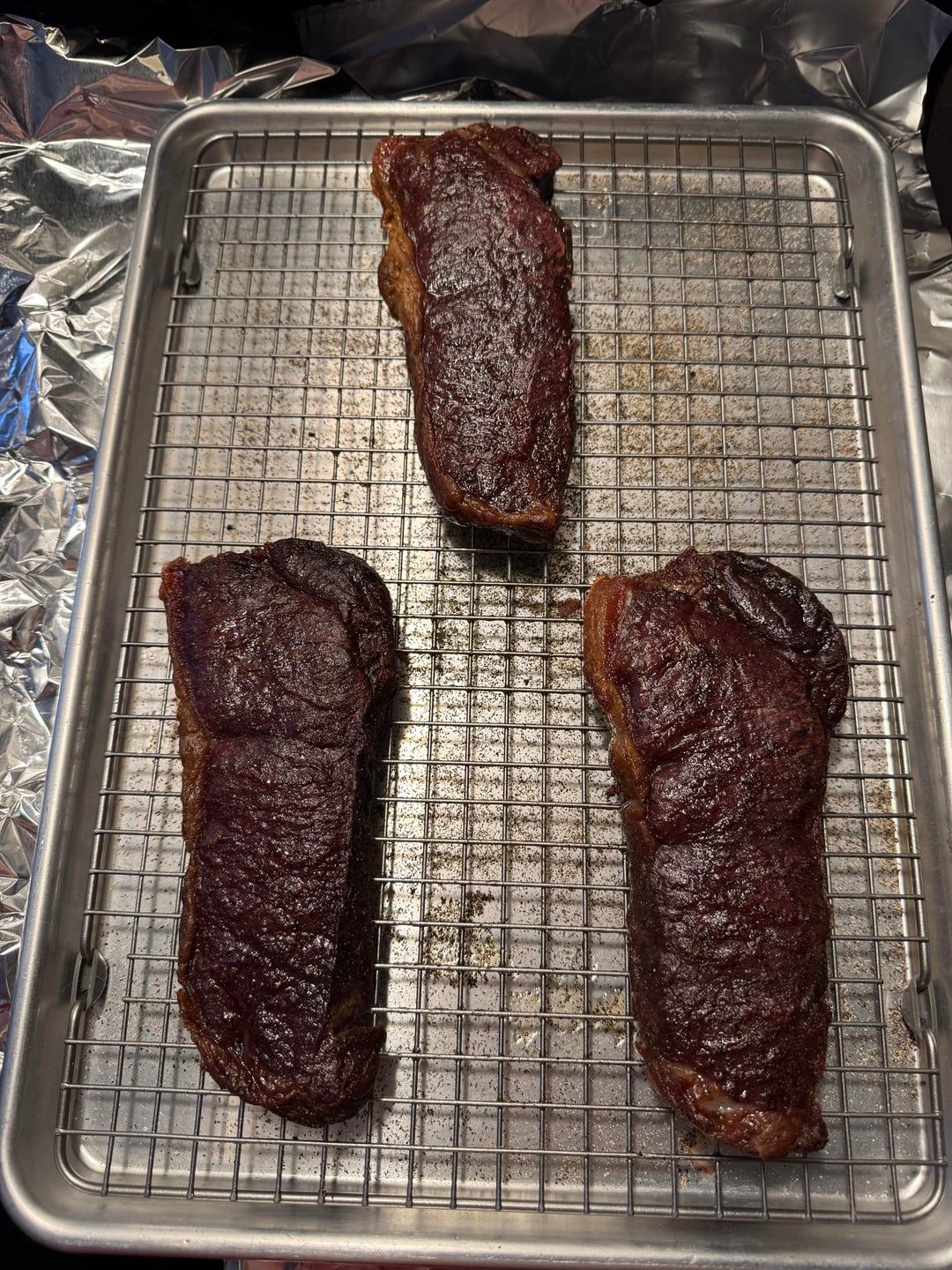 I took the advice to let the steaks rest at room temperature longer, and I’m really happy with how they turned out. Tasted delicious!