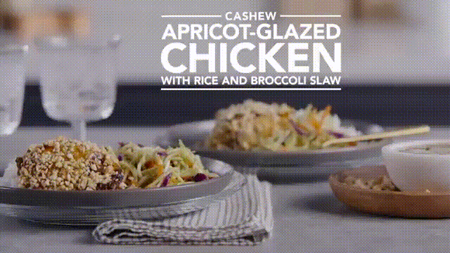 Cashew Apricot-glazed Chicken with Rice and Broccoli Slaw