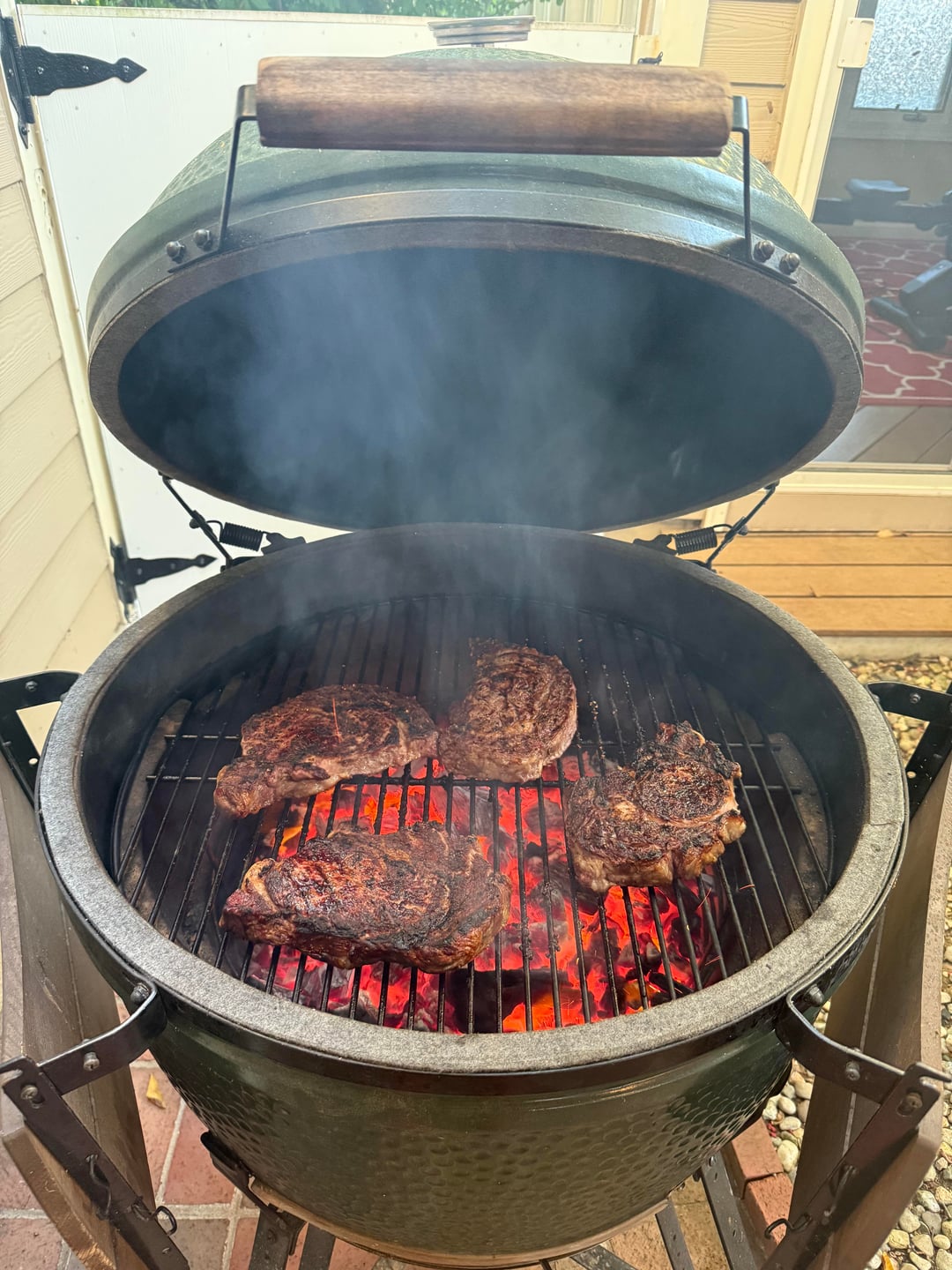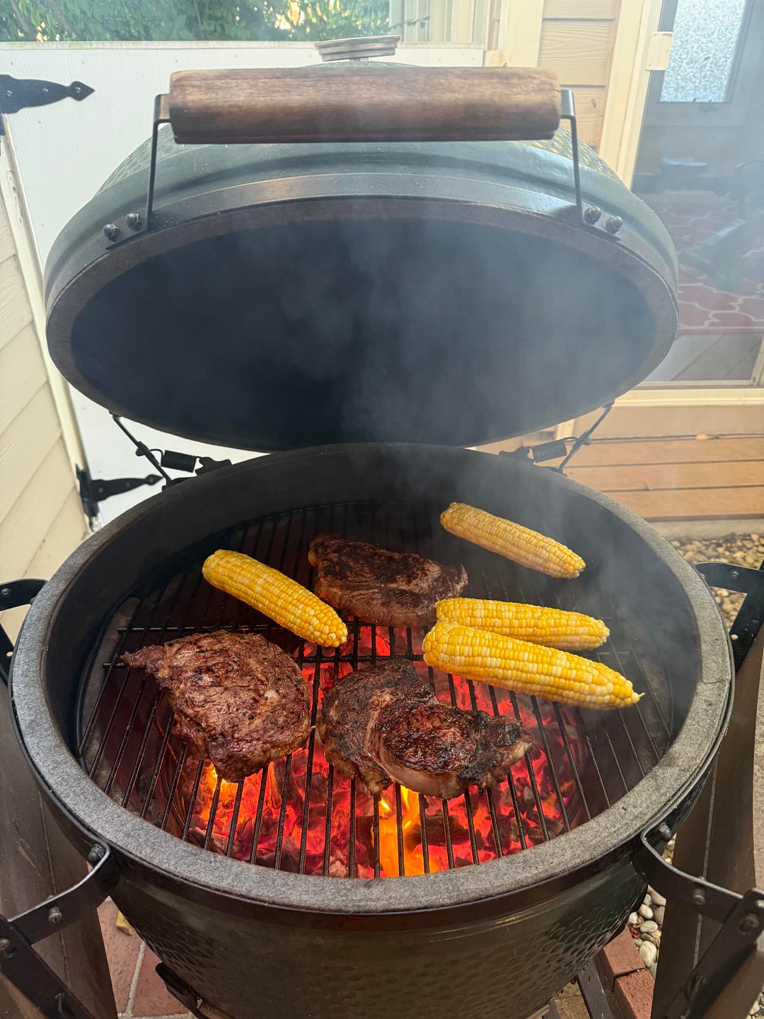 Weather has been crazy nice so I fired up the XL for dinner tonight. Can’t complain!by Ok-Information-5046 2 Comments MD_Firefighter3212 2 months ago Great looking steaks. How does the corn turn out when you cook it like that. I usually do husk on. Corn Cook details please. SmoesKnows 2 months ago Nice char