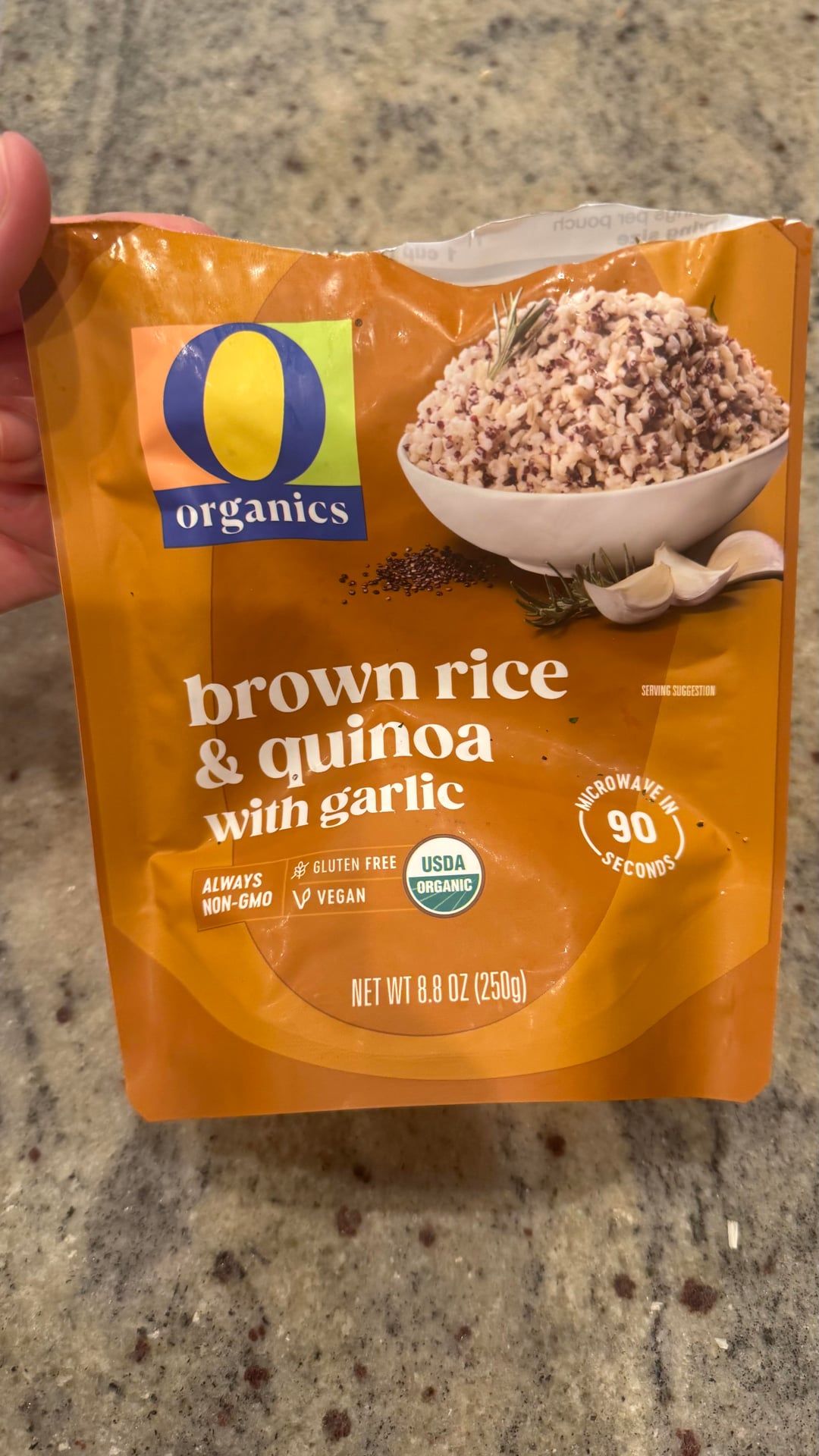 i used the microwave brown rice quinoa shown in 4th picture bc it was easy and quick. just put lemon pepper seasoning on the chicken and pan cooked. chopped it all up into pieces and mixed everything together with the dressing. it was about a 1/2 cup of dressing. eating it cold.