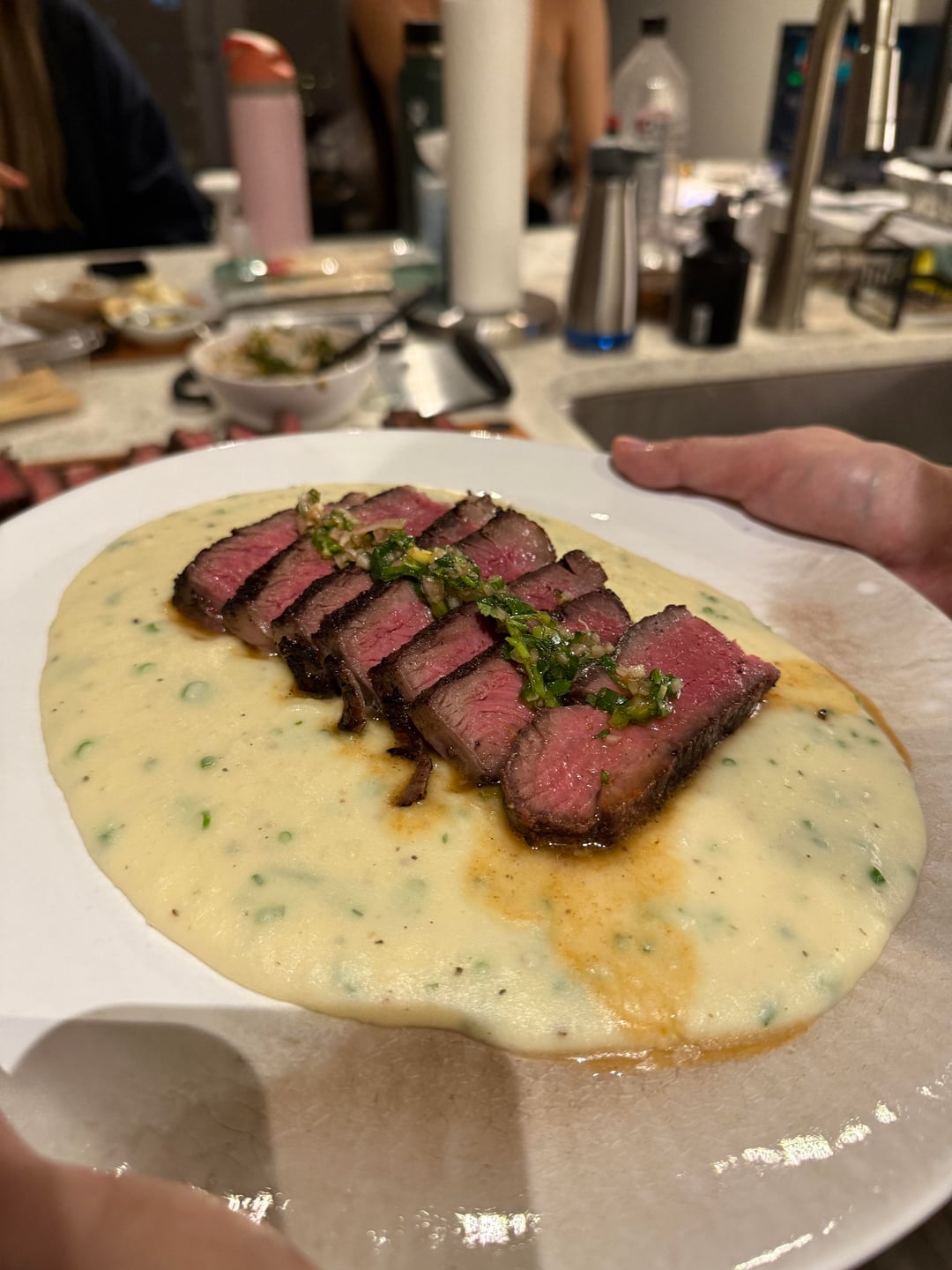 Different is definite. No mess, beautifully cooked sliced steak nicely plated on a bed of mashed potato and fancy AF. I am getting nervous just thinking about whether if am using the right fork.