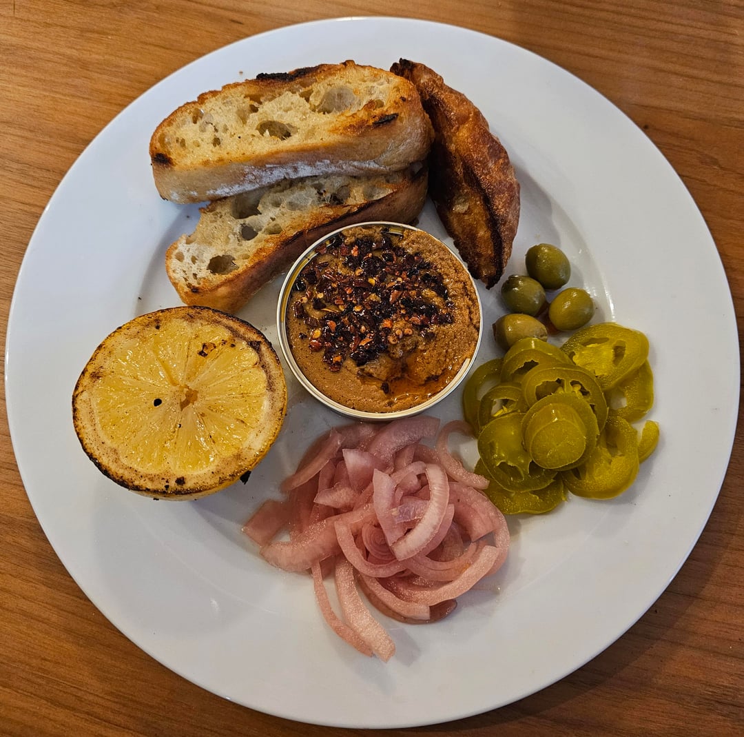2. Berthe Tartinade de Sardine paté topped with some chili crisp,