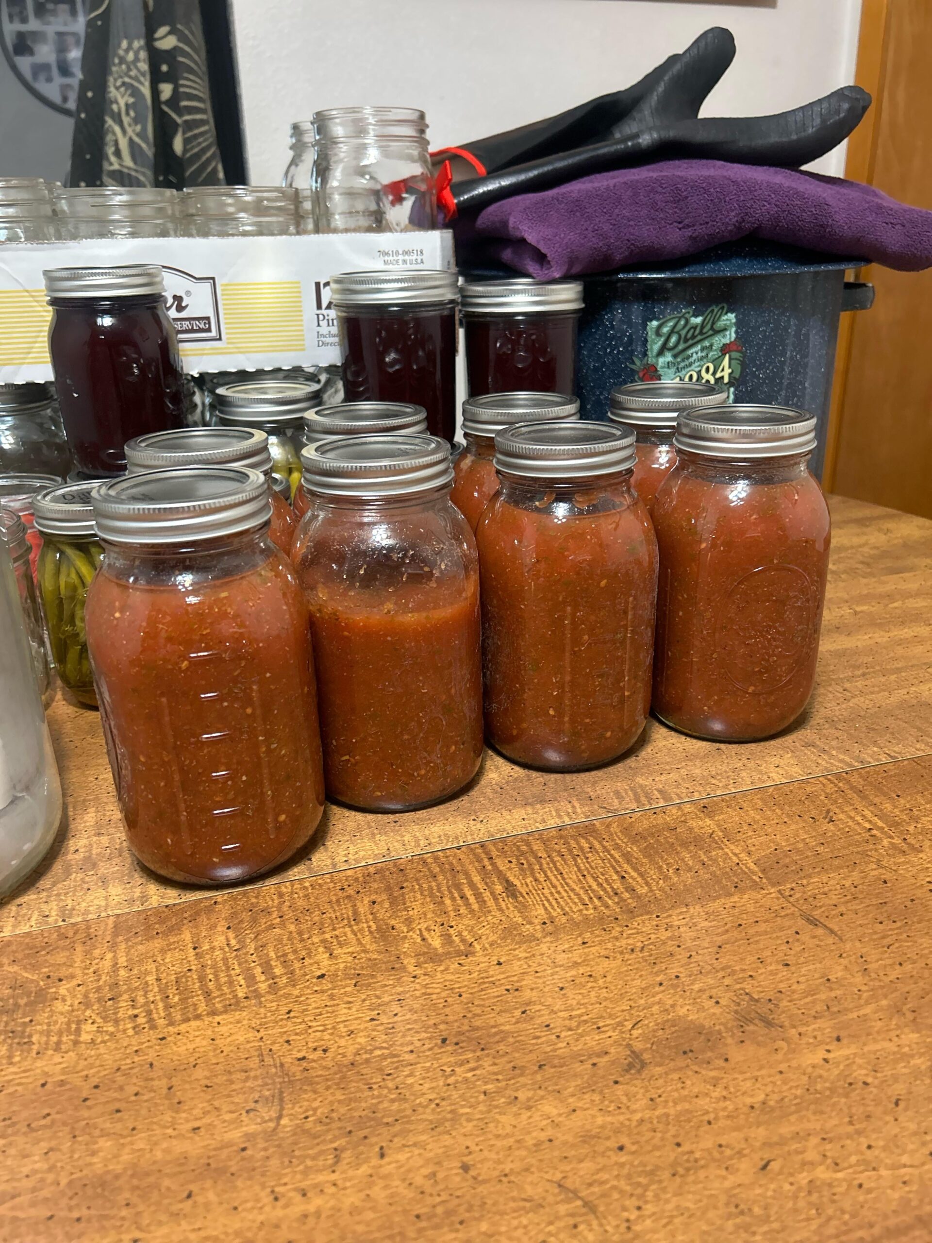 4. Fill them all appropriately, and then process. If you lose a bit of headspace after processing it’s ok. Use a pint jar instead of a quart as needed. It’s why I have random selections of pint, half pint and even quarter pints of lots of stuff.