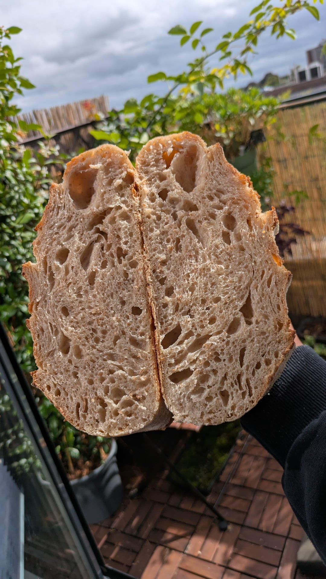 Proud of my 75% hydration sourdough! Started baking 7 months ago and still learning with every bake!