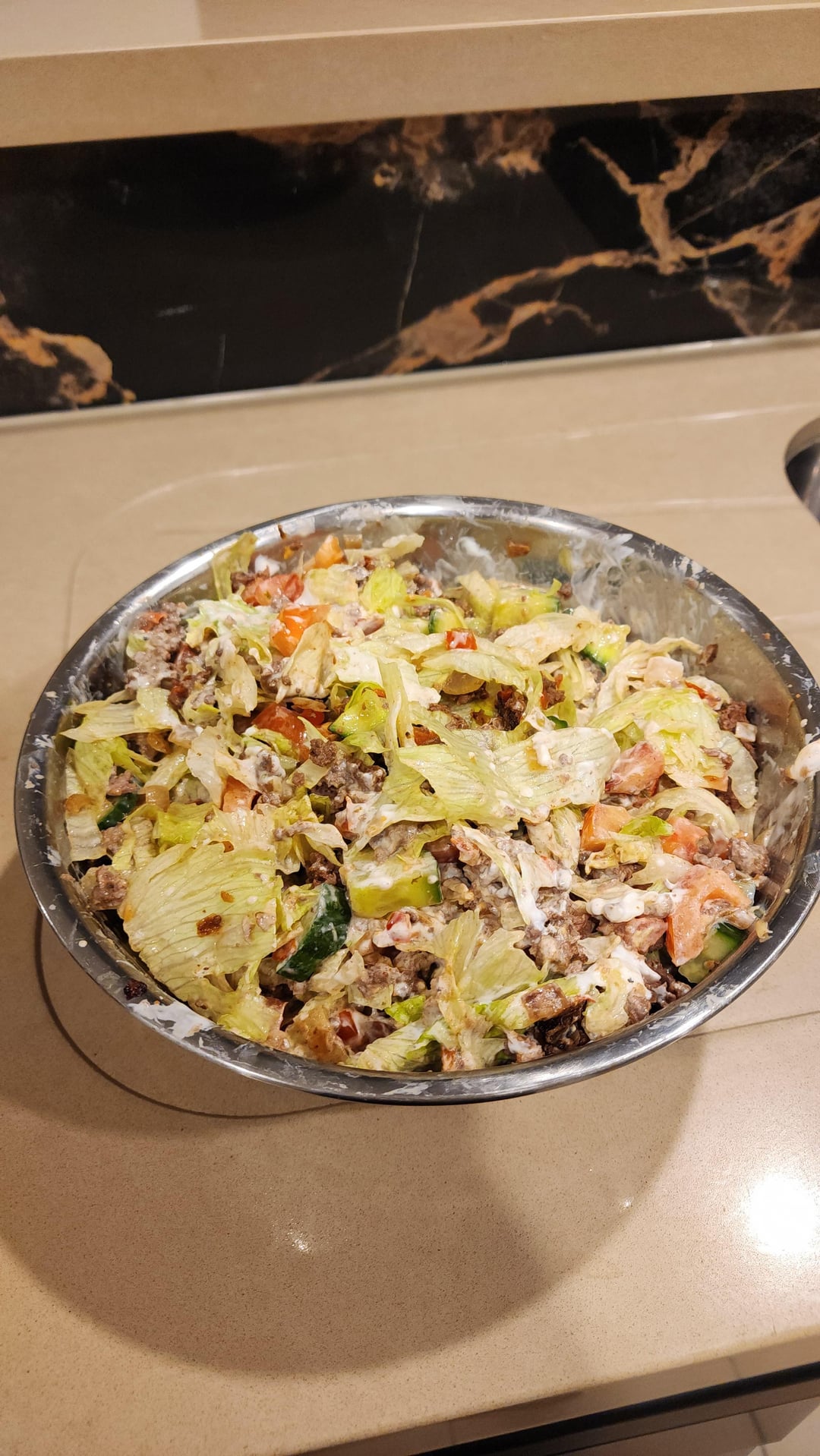 2 – Kangaroo salad with cucumber, tomato, high protein greek yogurt, lettuce, capsicum, onion